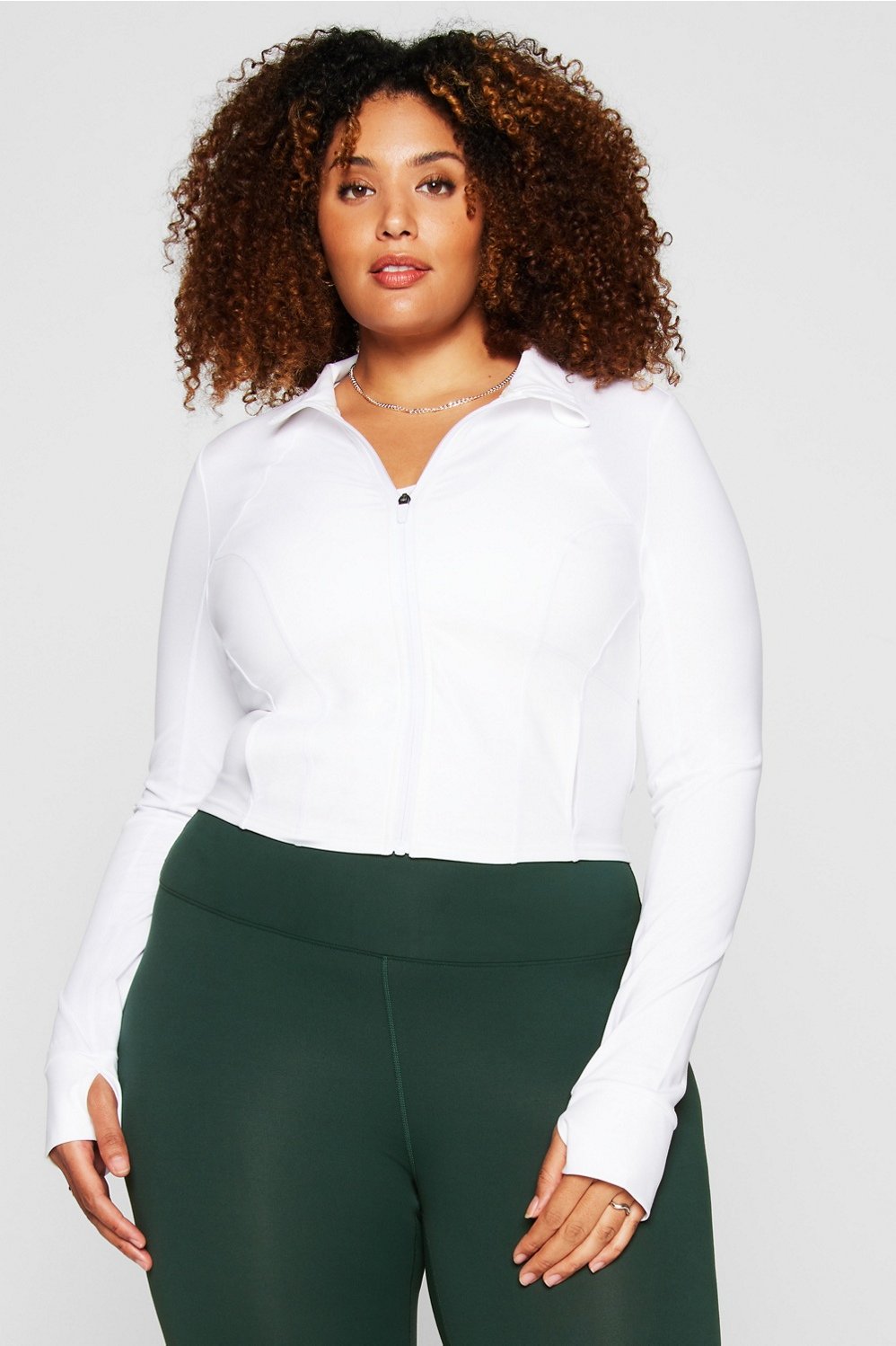 LEVEL UP. Don’t miss on the design of the year. With sweat-wicking tech and 4-way stretch, this cropped jacket is essential for your workouts. You’ll love the flattering fit, convenient thumbholes, and side pockets. Obviously, add to cart.