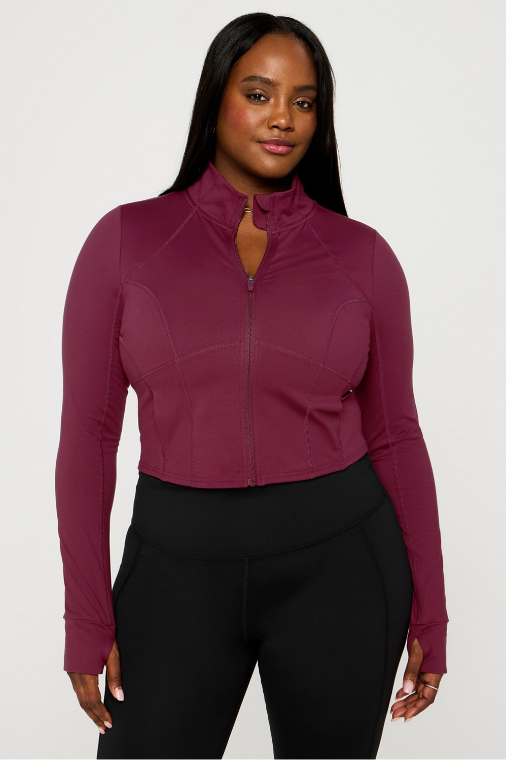 LEVEL UP. Don’t miss on the design of the year. With sweat-wicking tech and 4-way stretch, this cropped jacket is essential for your workouts. You’ll love the flattering fit, convenient thumbholes, and side pockets. Obviously, add to cart.