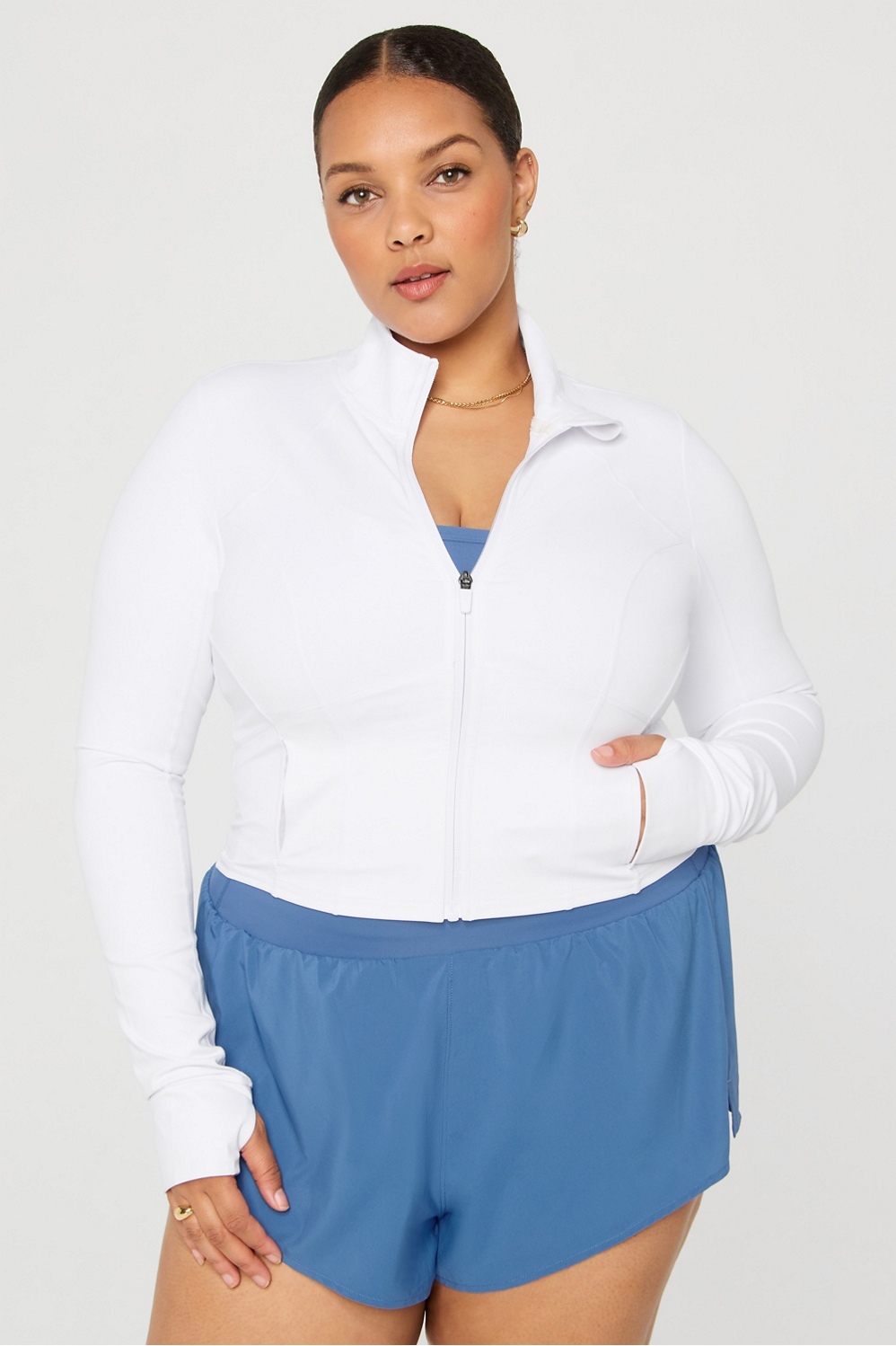 LEVEL UP. Don’t miss on the design of the year. With sweat-wicking tech and 4-way stretch, this cropped jacket is essential for your workouts. You’ll love the flattering fit, convenient thumbholes, and side pockets. Obviously, add to cart.