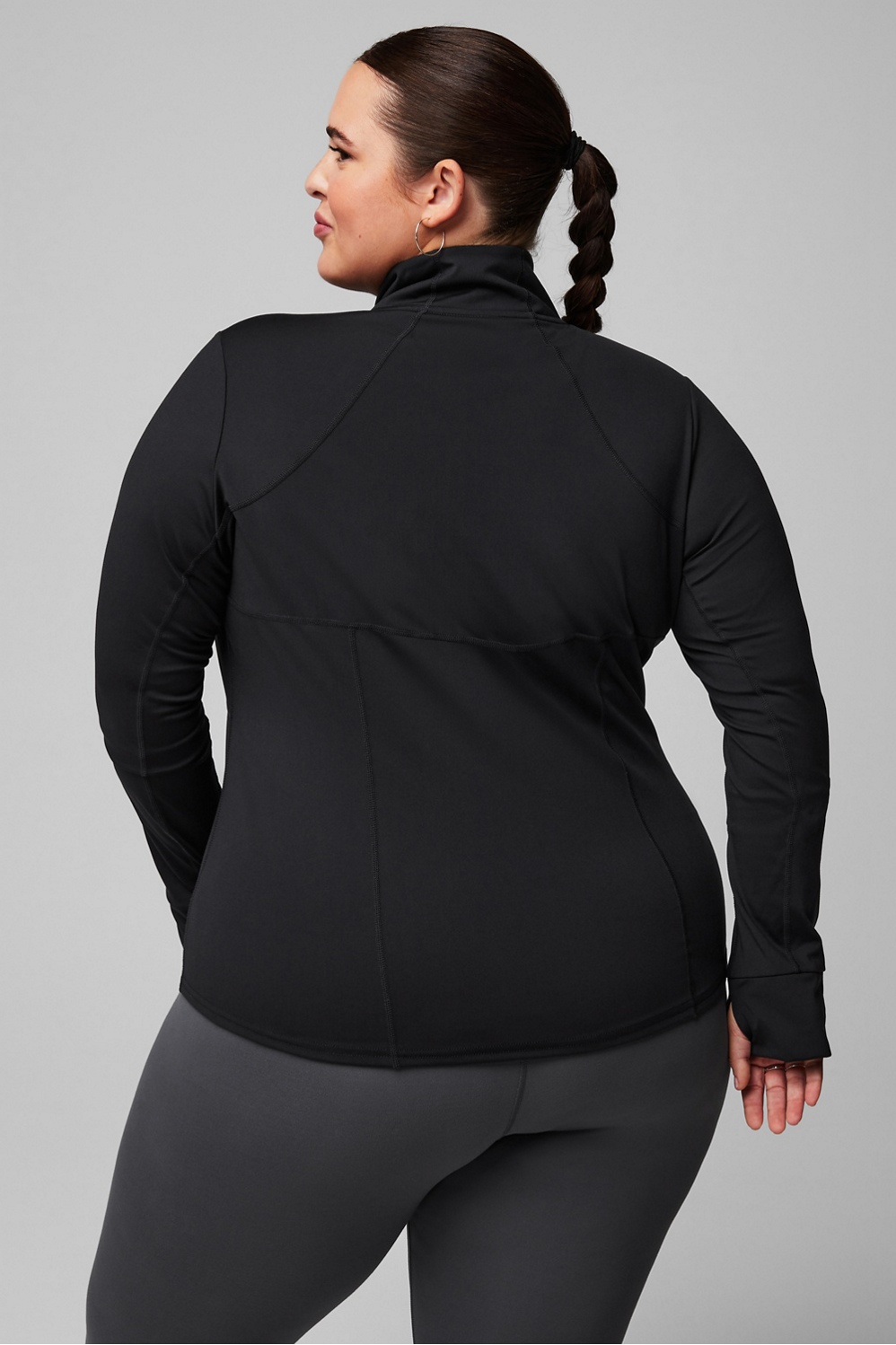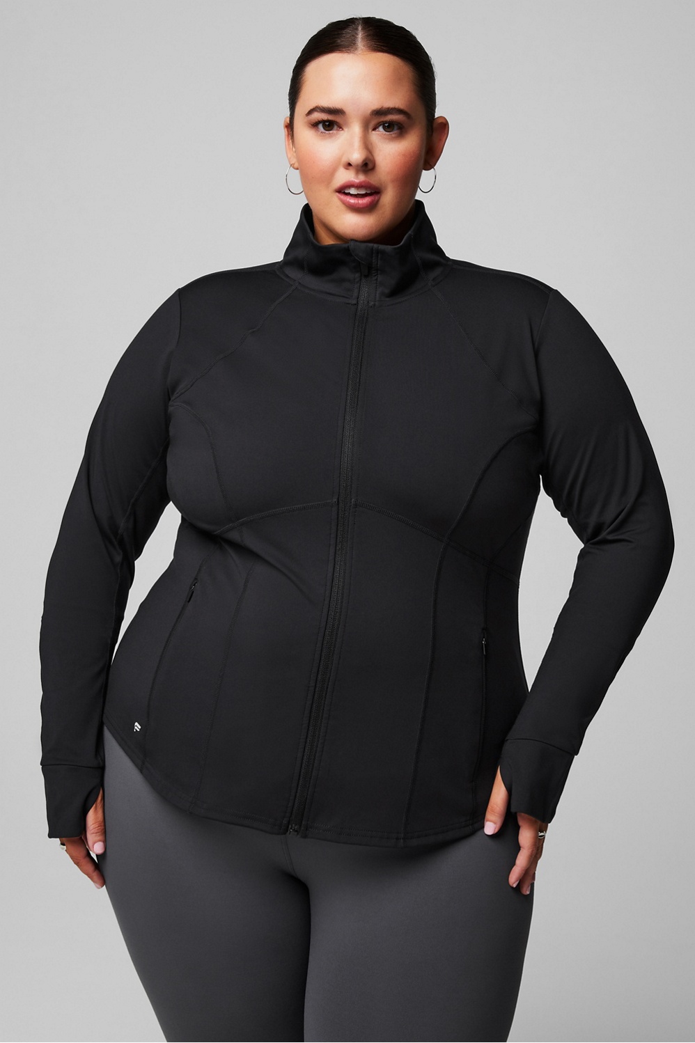 Your perfect training layer. Designed with sweat-wicking tech and 4-way stretch, this jacket is essential for outdoor workouts. You’ll love the flattering fit and convenient thumbholes — plus side and interior pockets for added storage.
