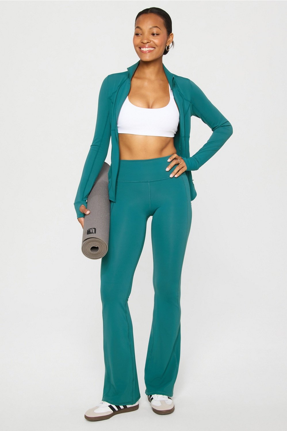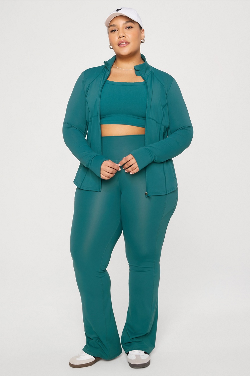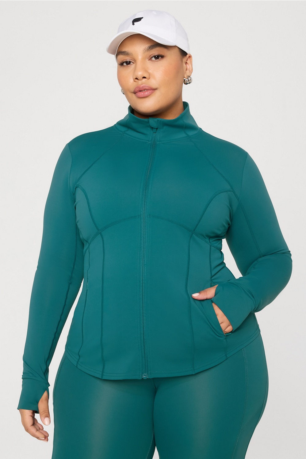 Your perfect training layer. Designed with sweat-wicking tech and 4-way stretch, this jacket is essential for outdoor workouts. You’ll love the flattering fit and convenient thumbholes — plus side and interior pockets for added storage.