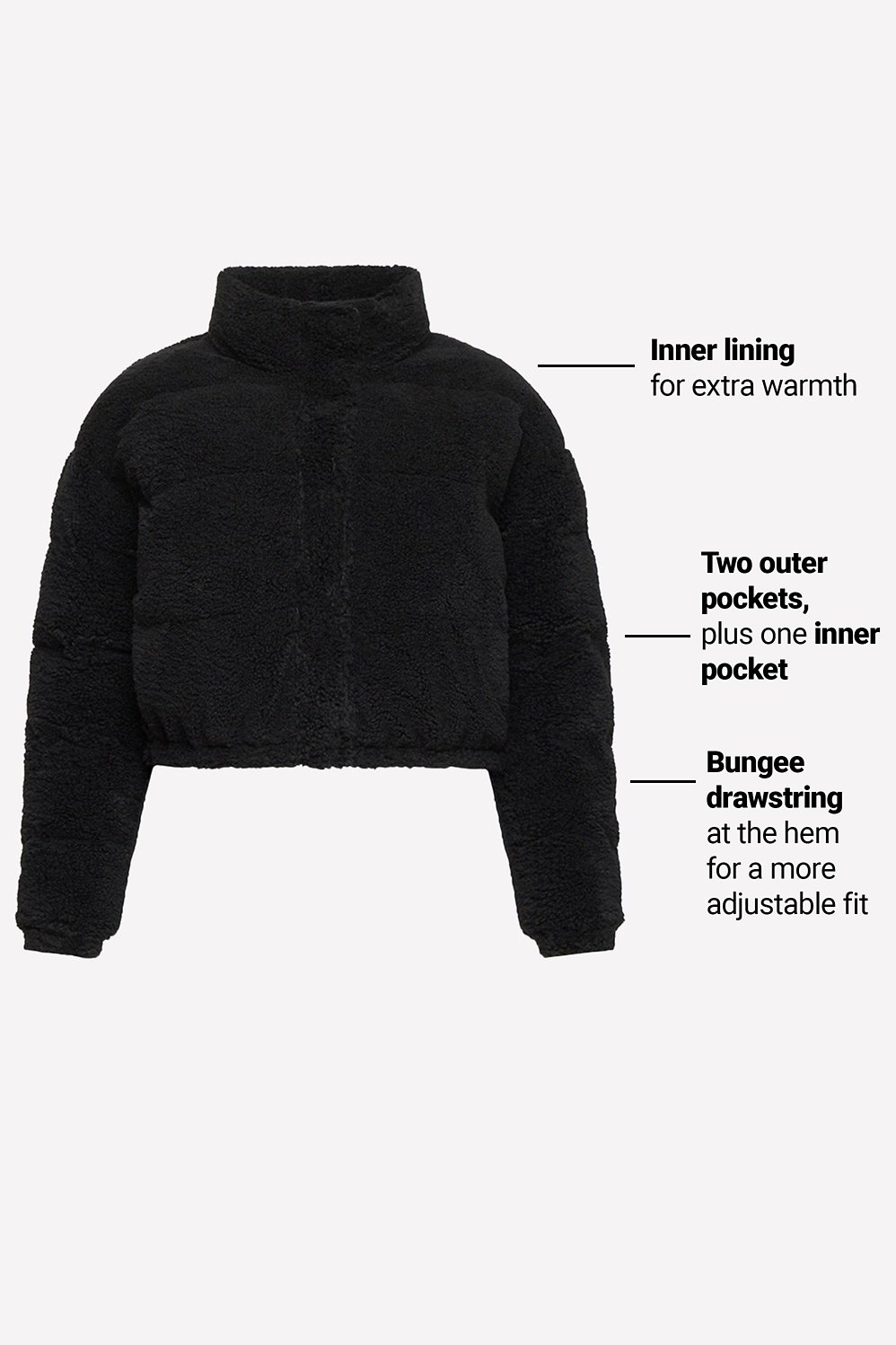 Look stylish as temps drop in this lined, faux shearling jacket. Featuring a cropped fit and extra pockets to keep your essentials at hand. The perfect layering piece with a slightly roomy fit make it a guaranteed compliment magnet.