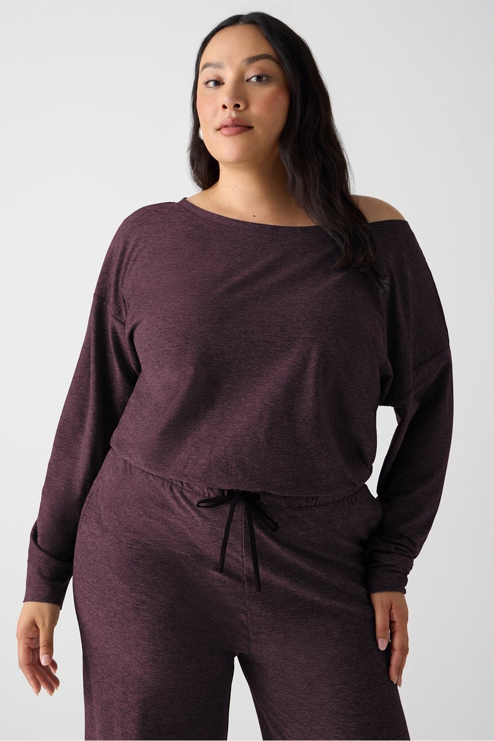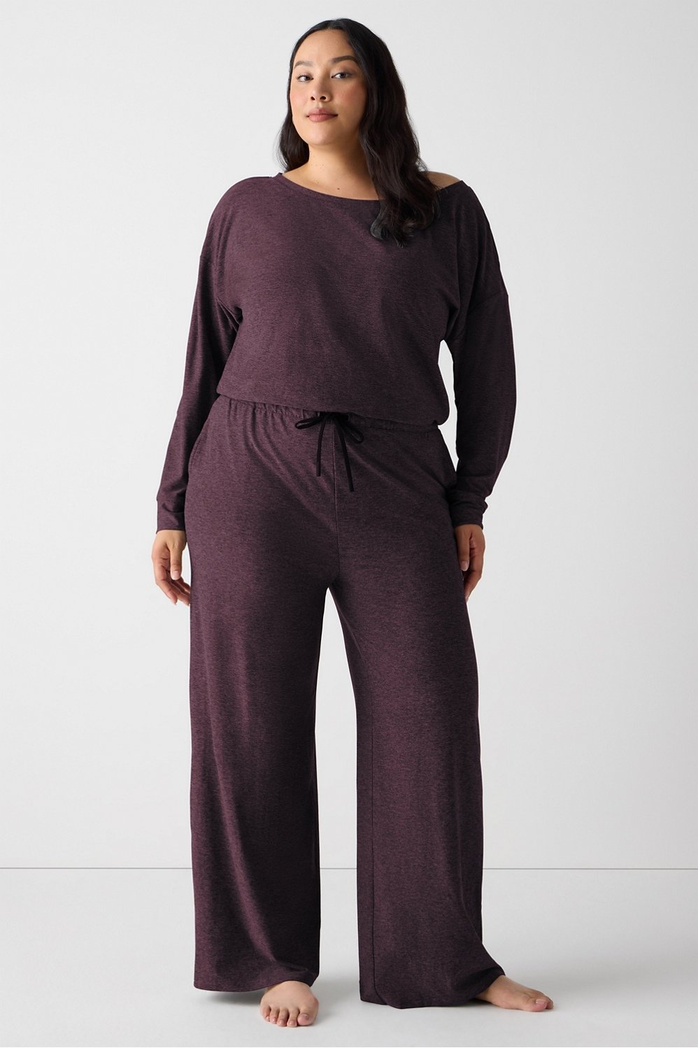 Soft, breathable, and effortless. This onesie features a chic off-the-shoulder neckline and relaxed silhouette. The perfect mix of cozy comfort and elevated style.