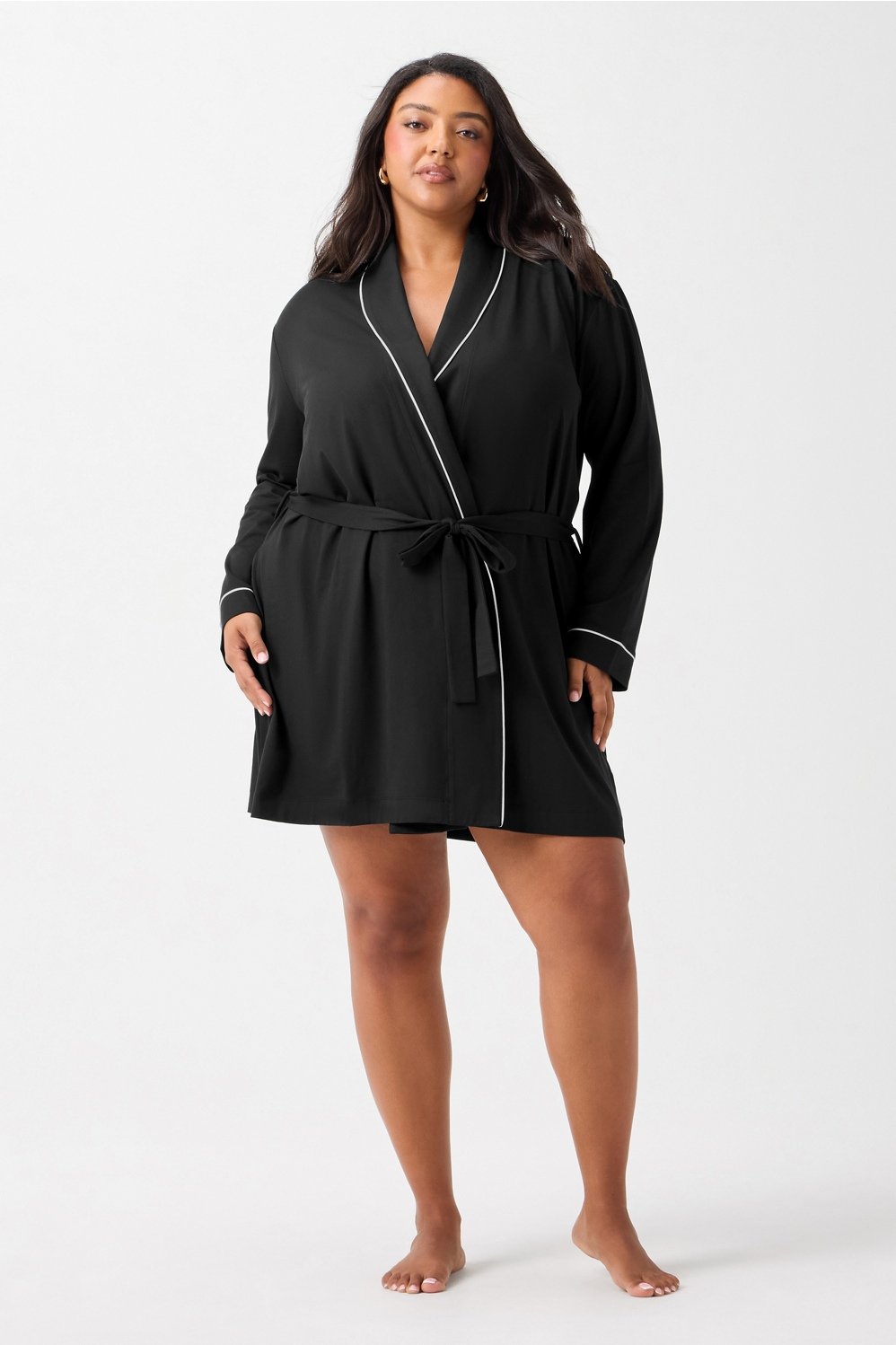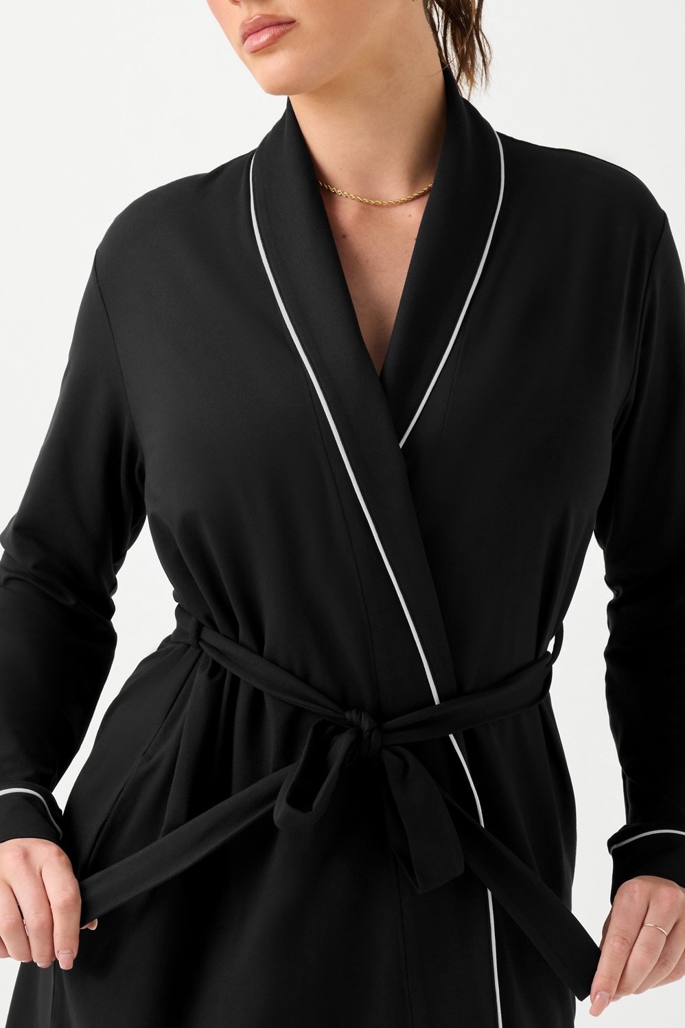 Wrap yourself in cloud-level comfort. This robe is cut from our soft jersey fabric with piped accents, a shawl collar, and an adjustable belt that ties it all together. Side seam pockets and a thigh-skimming length make it practical and fuss-free.