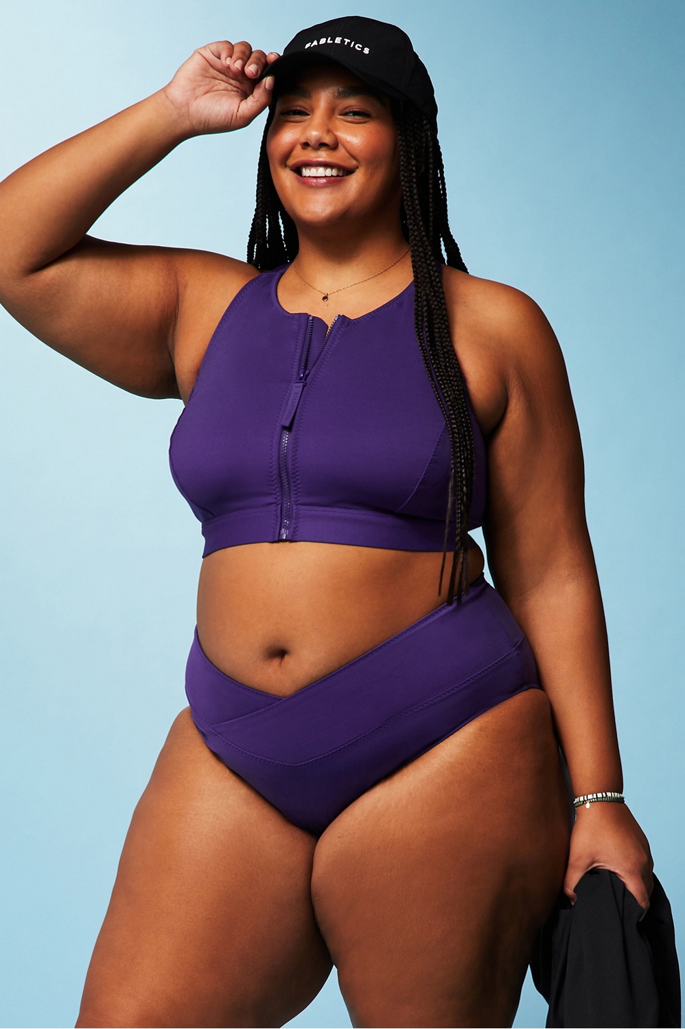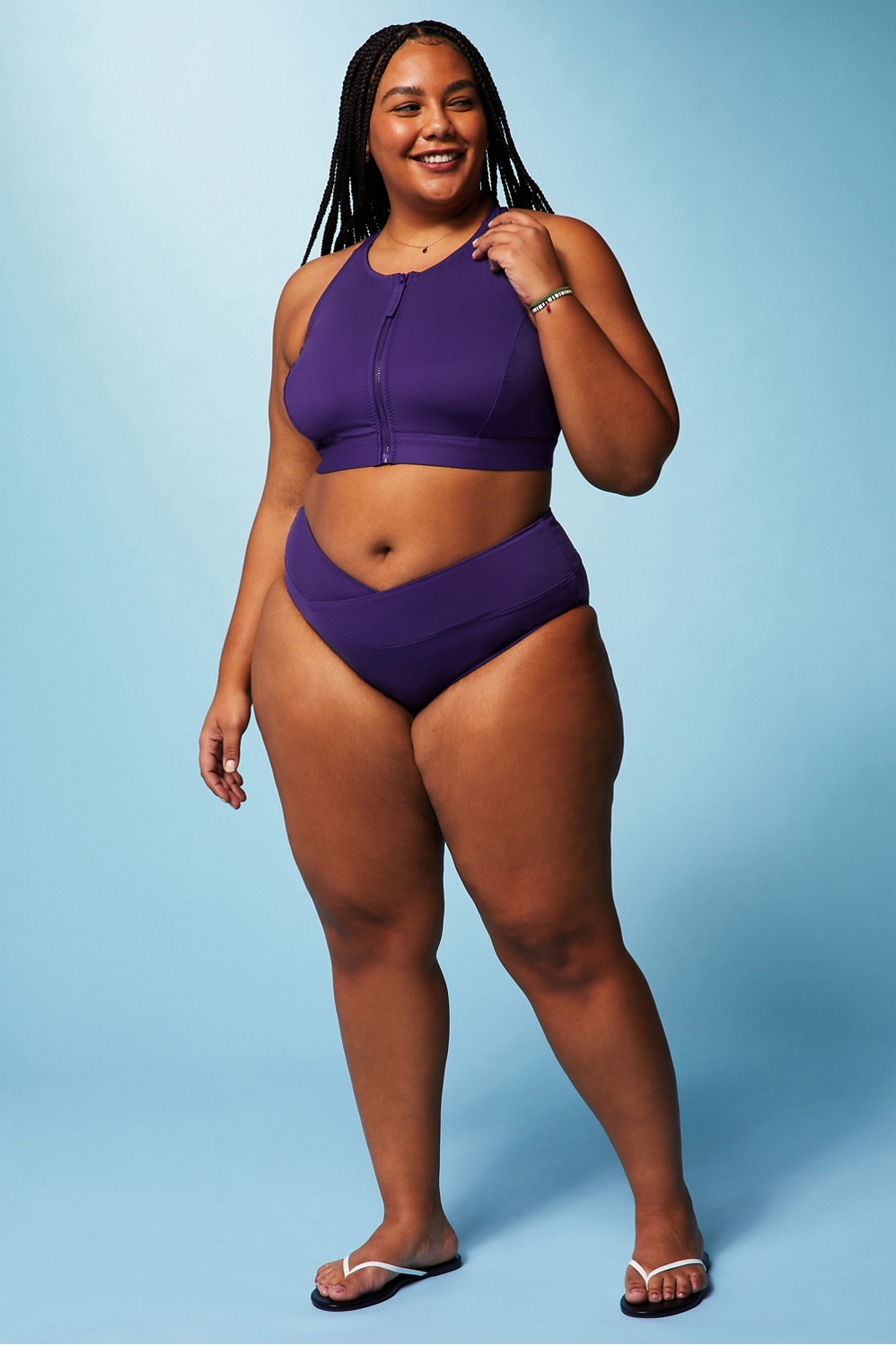 Classic with a twist. This high-waisted swim bottom gives you just the right amount of coverage on bottom and a flattering cross-over waistband on top. It’s crafted in recycled fabric that’s high compression and shaping for the perfect fit.