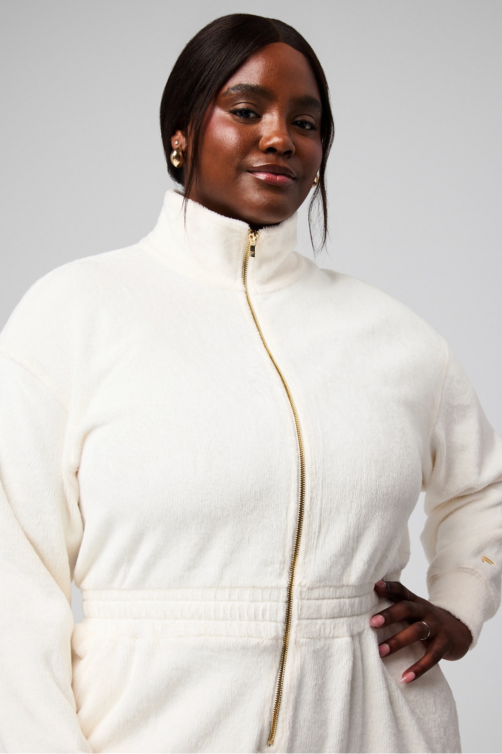 Apr??s ski energy. This may be our softest onesie ever, made with touchable Cozy Cord fabric. It features an off-the-shoulder silhouette with zipper closure, elastic waistband, and ultimate all-day comfort.