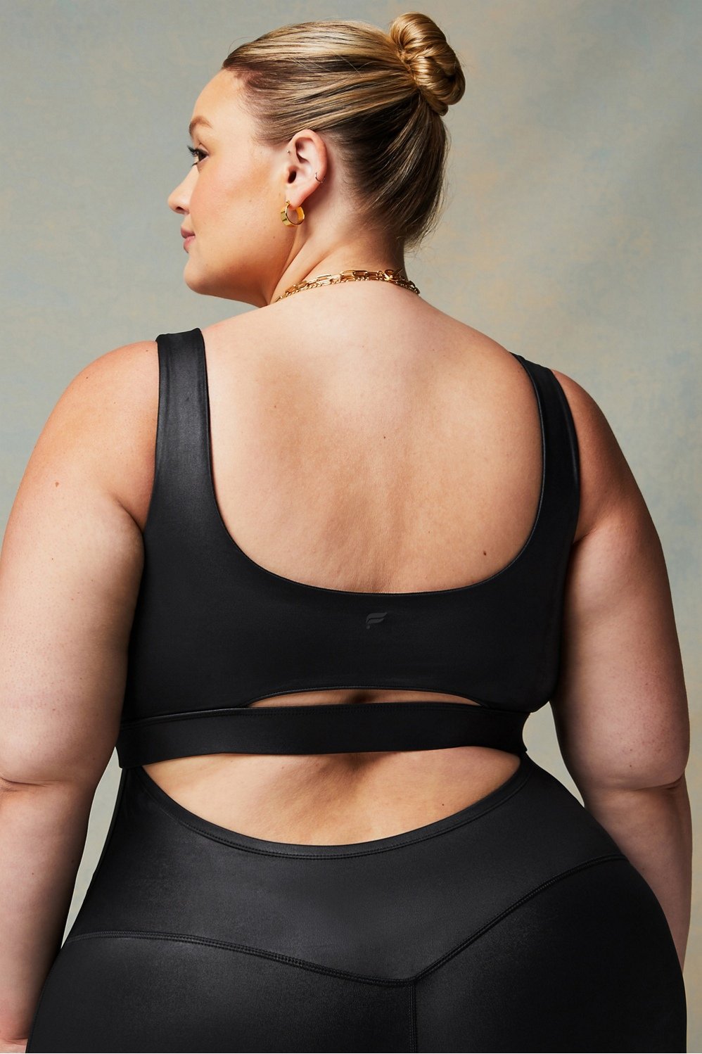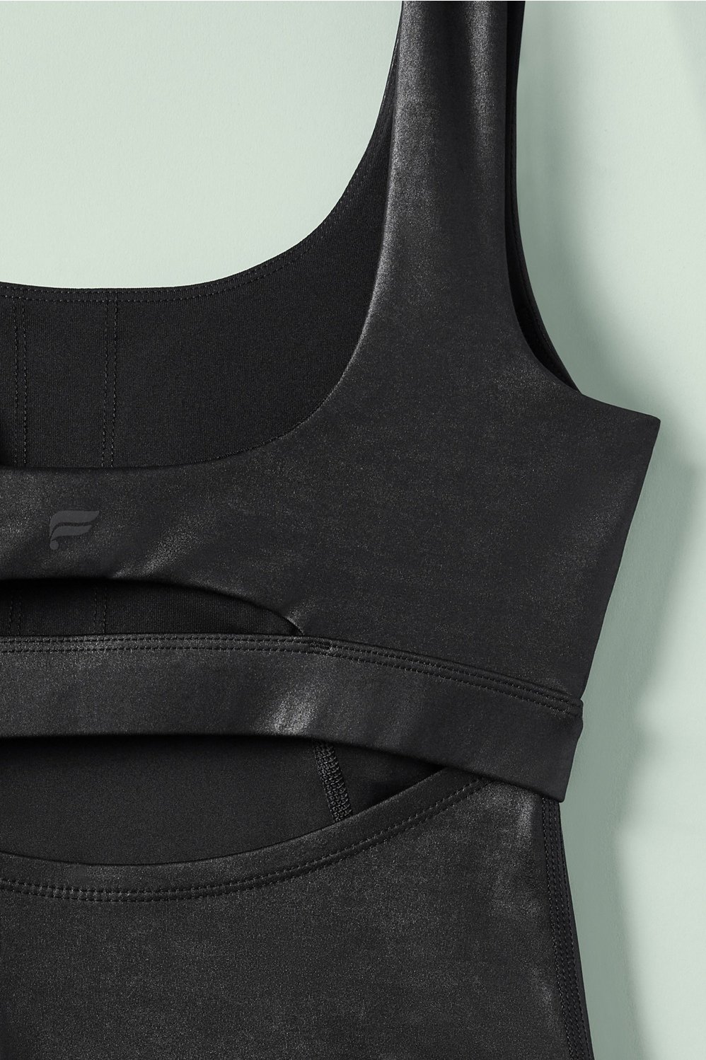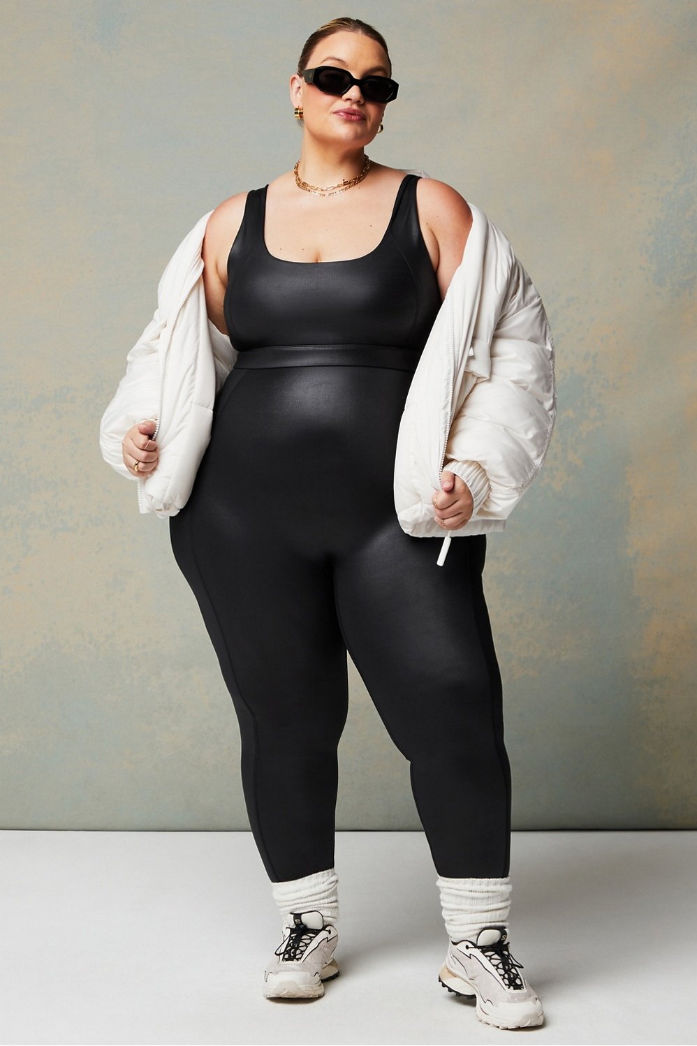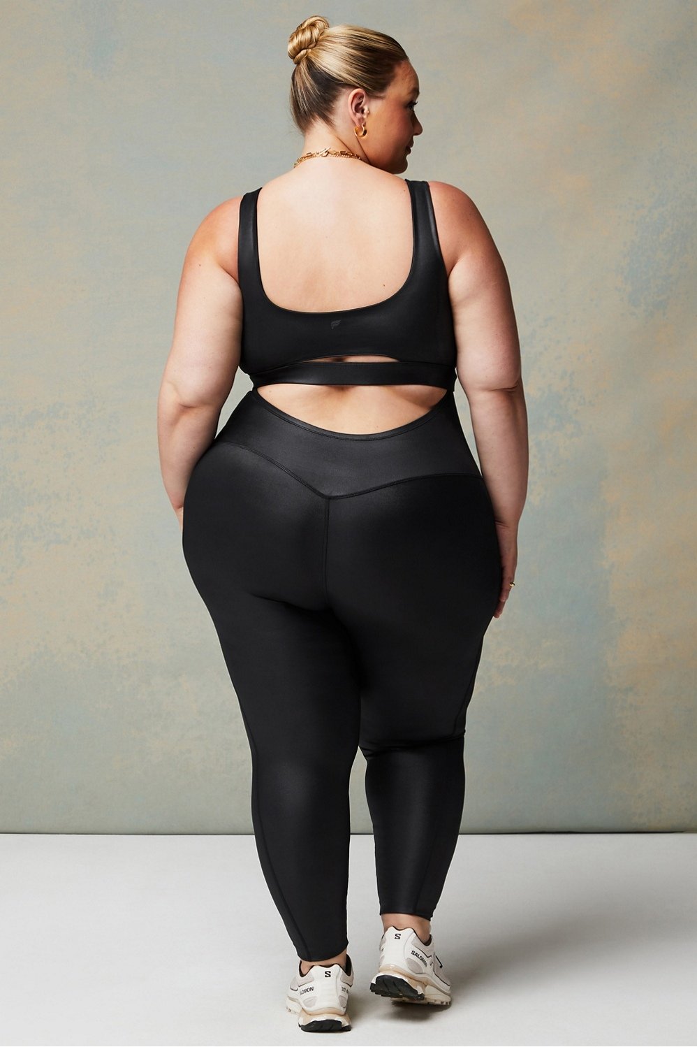 Shine on. This performance jumpsuit is made with a eco-friendly Motion365+ fabric in a shiny hue, and offers high compression and max breathability for any and every workout.