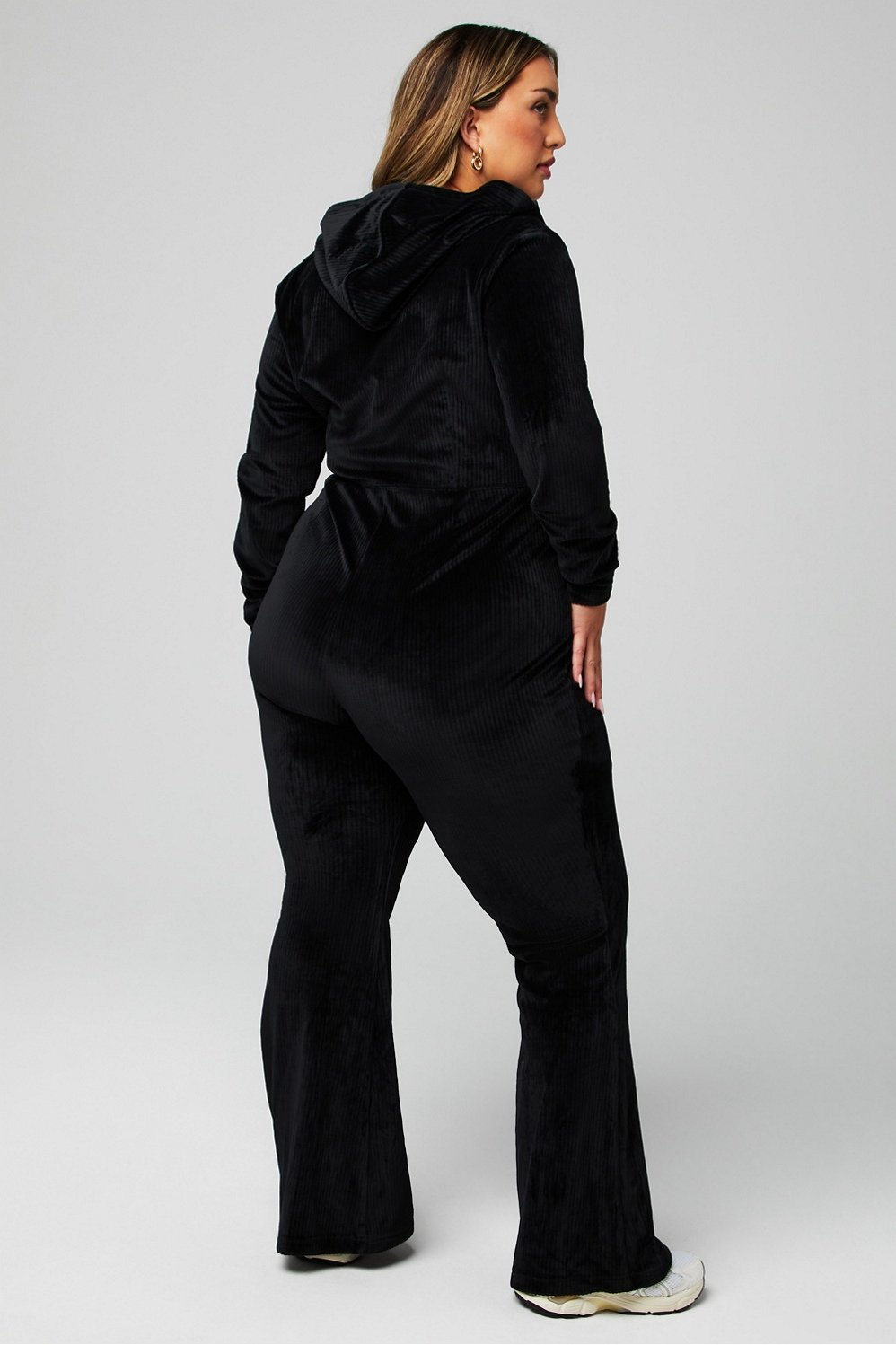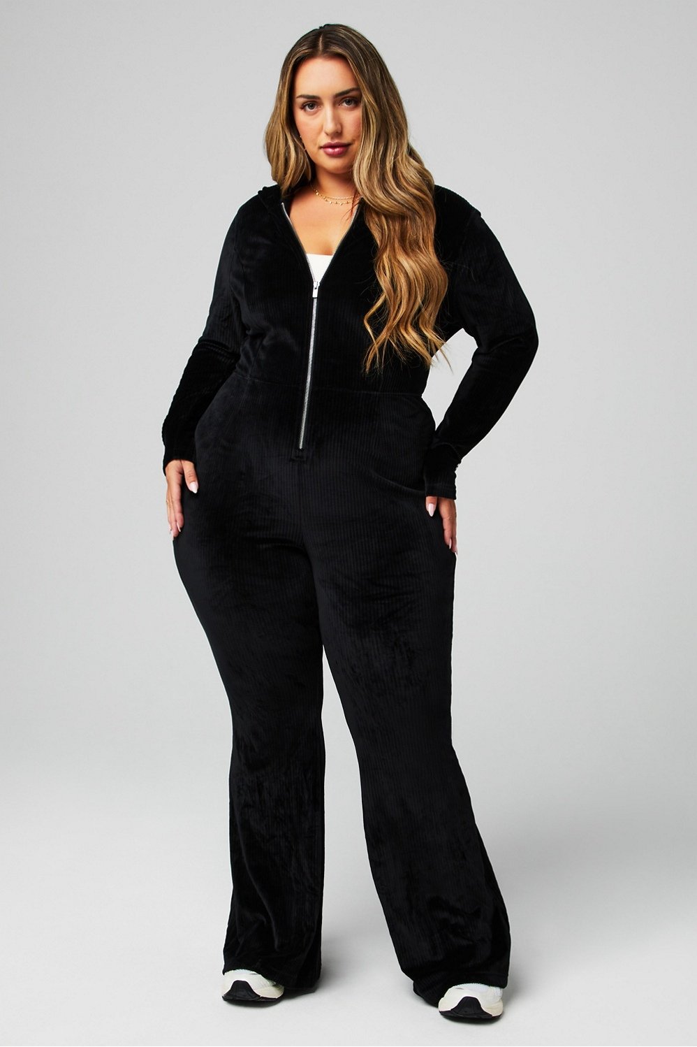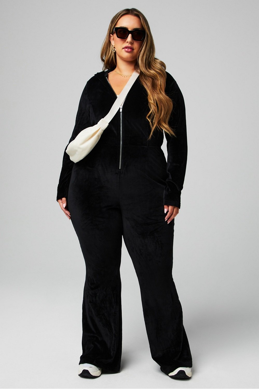 Embrace the cozy-chic vibes. Crafted in soft Plush Rib fabric, this jumpsuit features a fitted silhouette and a front zipper for ease. The hooded neckline adds comfort, making it the perfect blend of cute and casual.