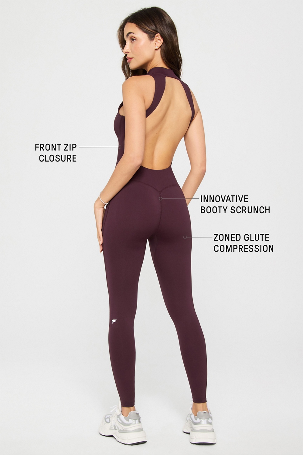 Open back. Booty-scrunch tech. Zip-front design. This jumpsuit is built for endless confidence. Best of all? The sculpting magic of our highly-rated seamless fabric, delivering max booty definition and moderate compression. Size down for a more sculpted fit.