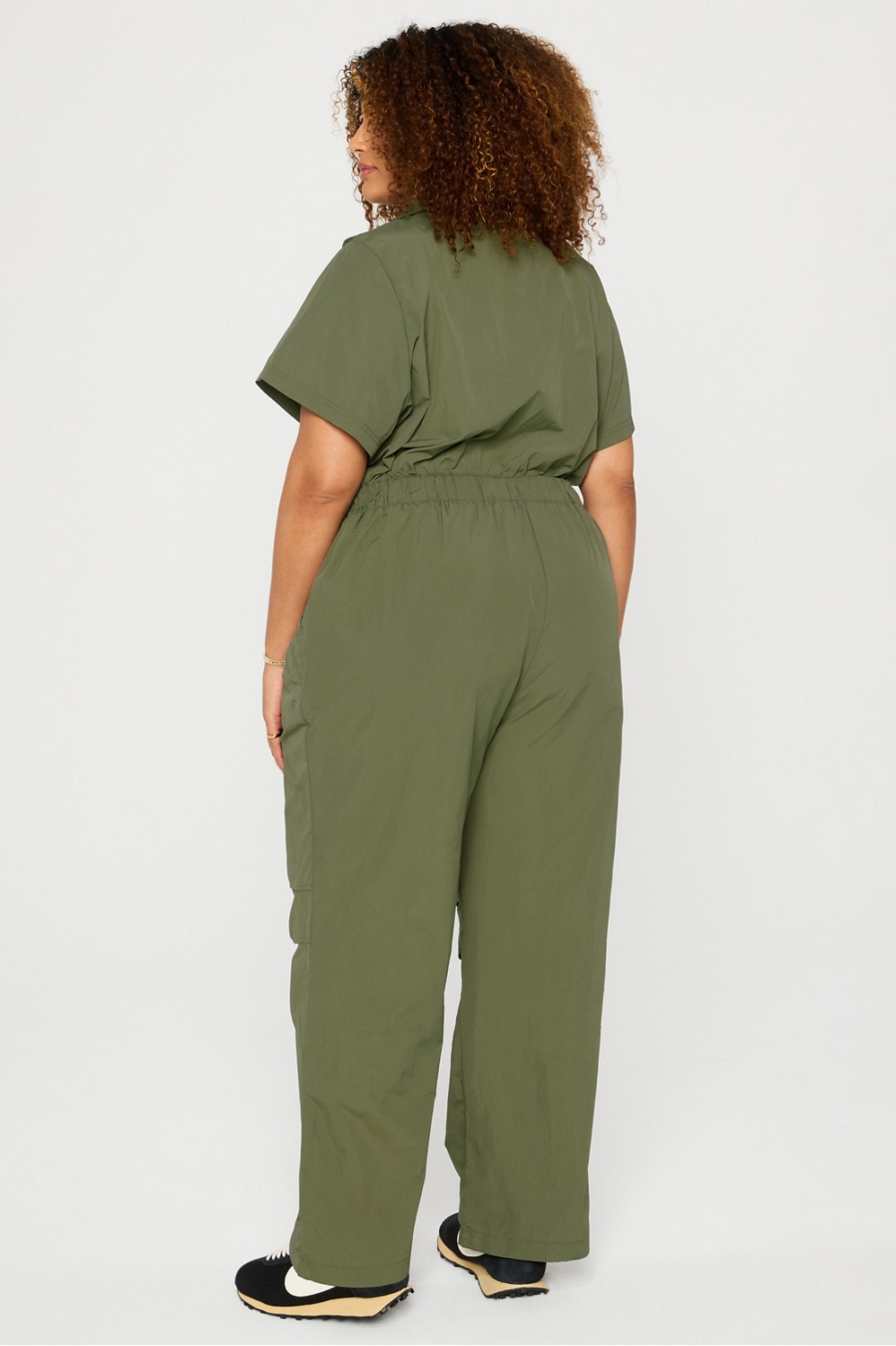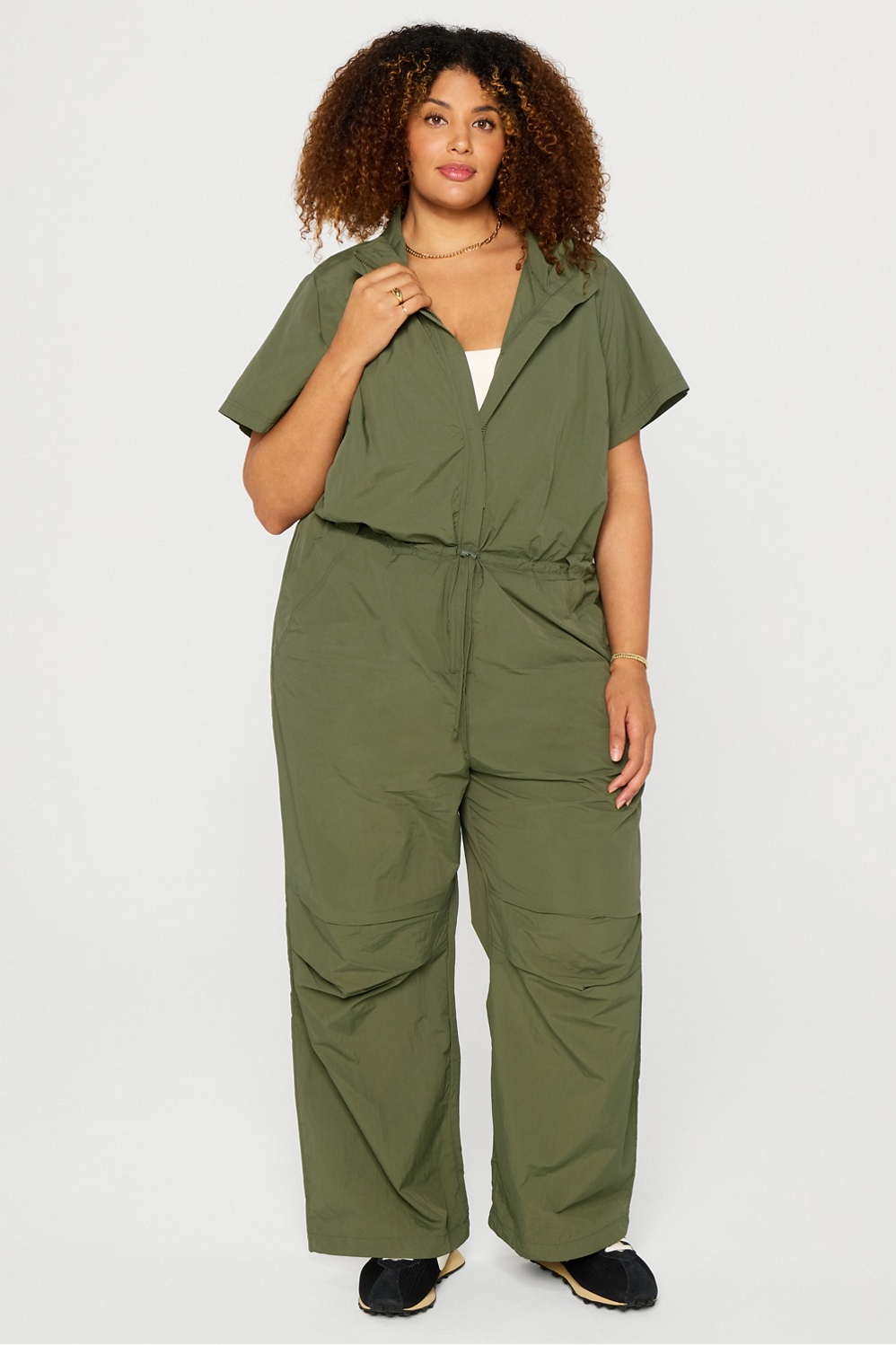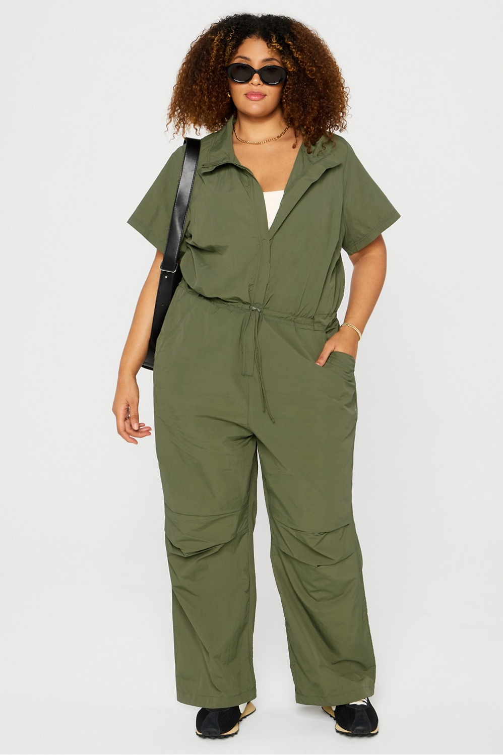 Steal the show. Perfect for travel or casual workdays, this comfy style features breathable matte woven fabric and a flattering one-piece silhouette with waist-cinching detail.