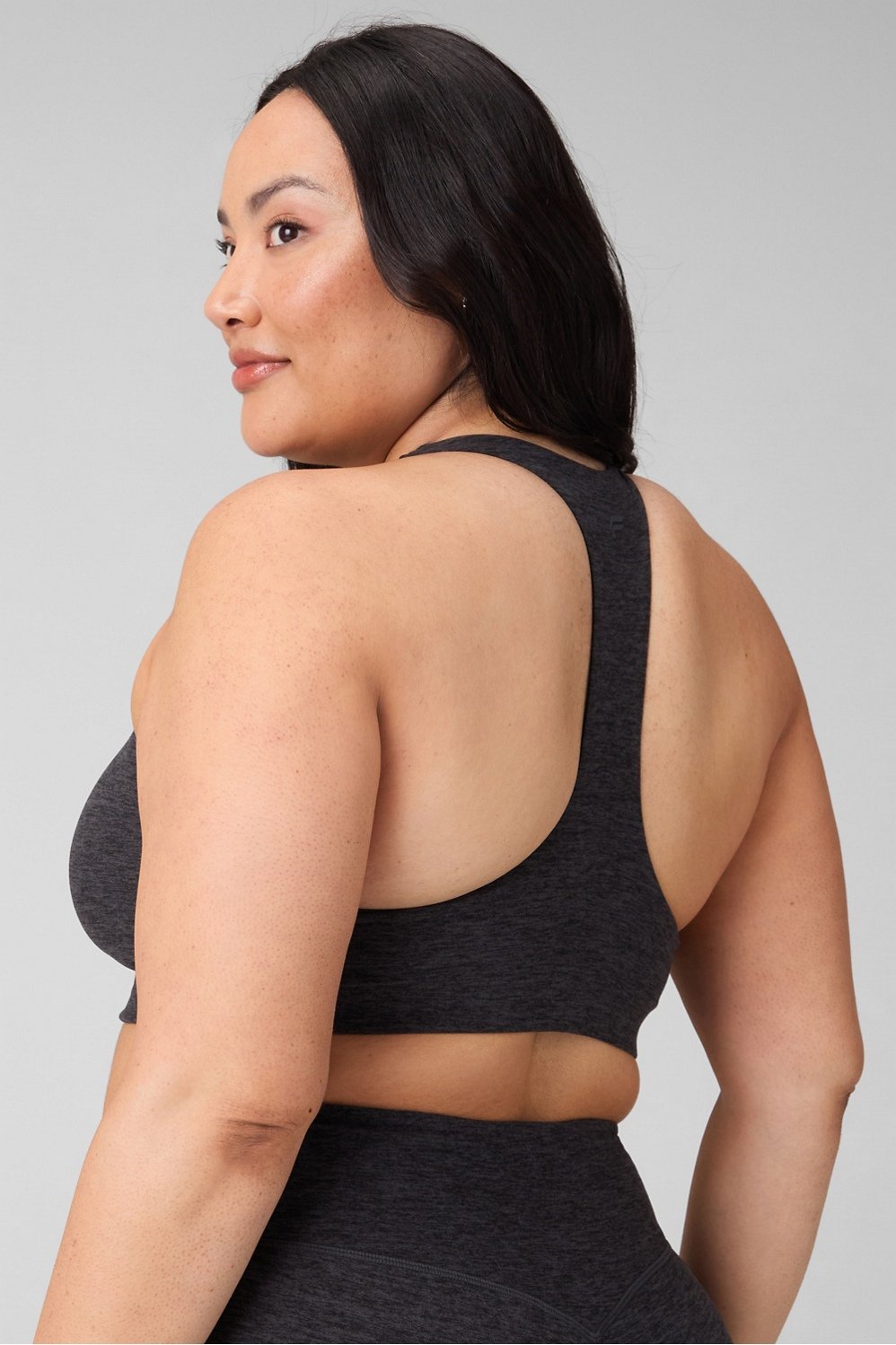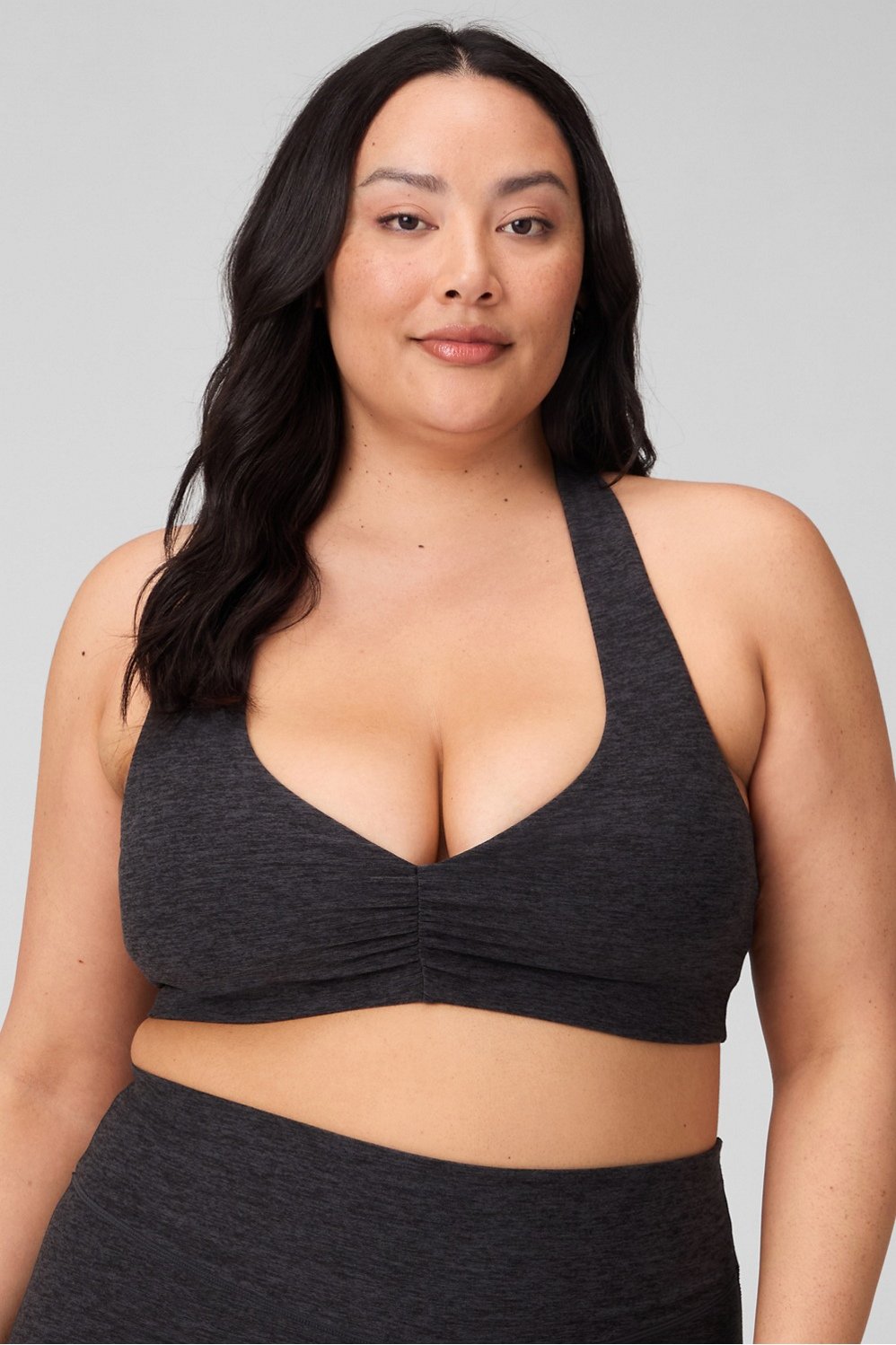 Meet your new soft and romantic fave. This ruched-front bra is made for low-impact movement and laid-back days, with light support and removable cups for a just-right fit. Crafted from ultra-soft HeatherFlex fabric, it feels brushed, breathable, and buttery smooth&mdashlike your comfiest tee, but cuter.
