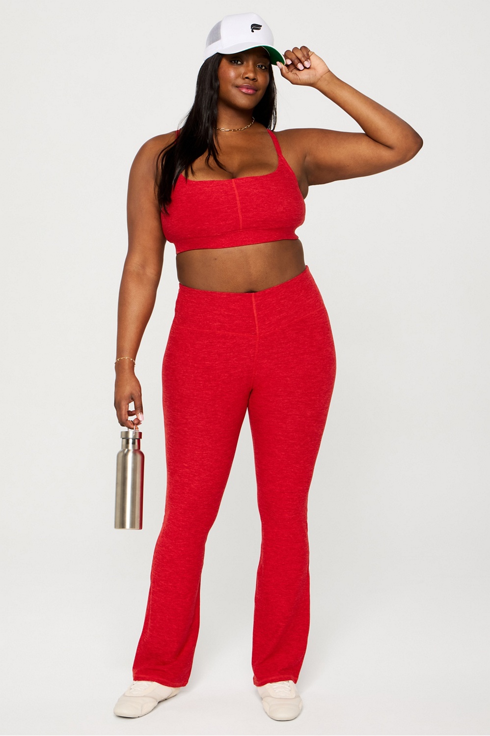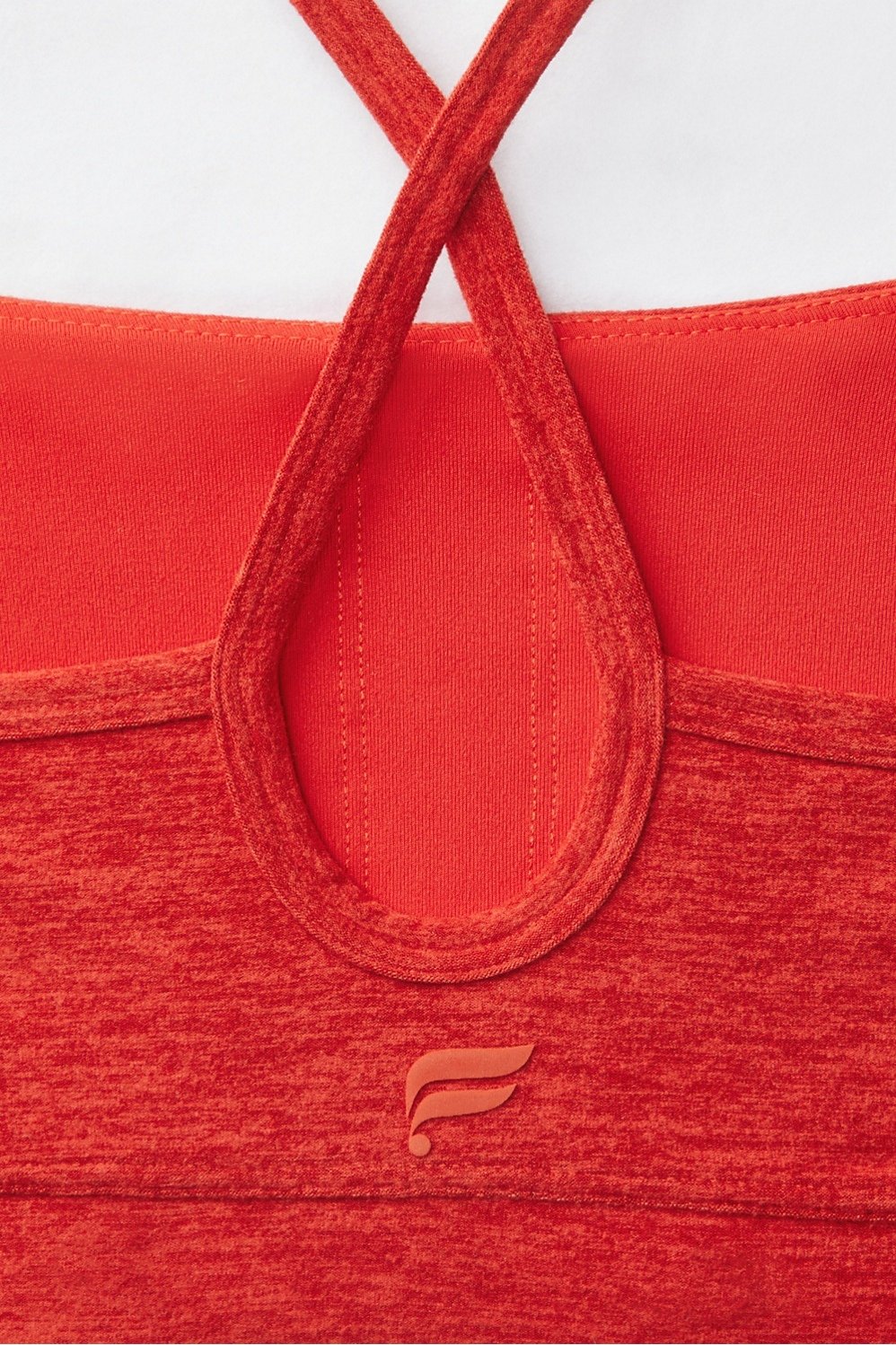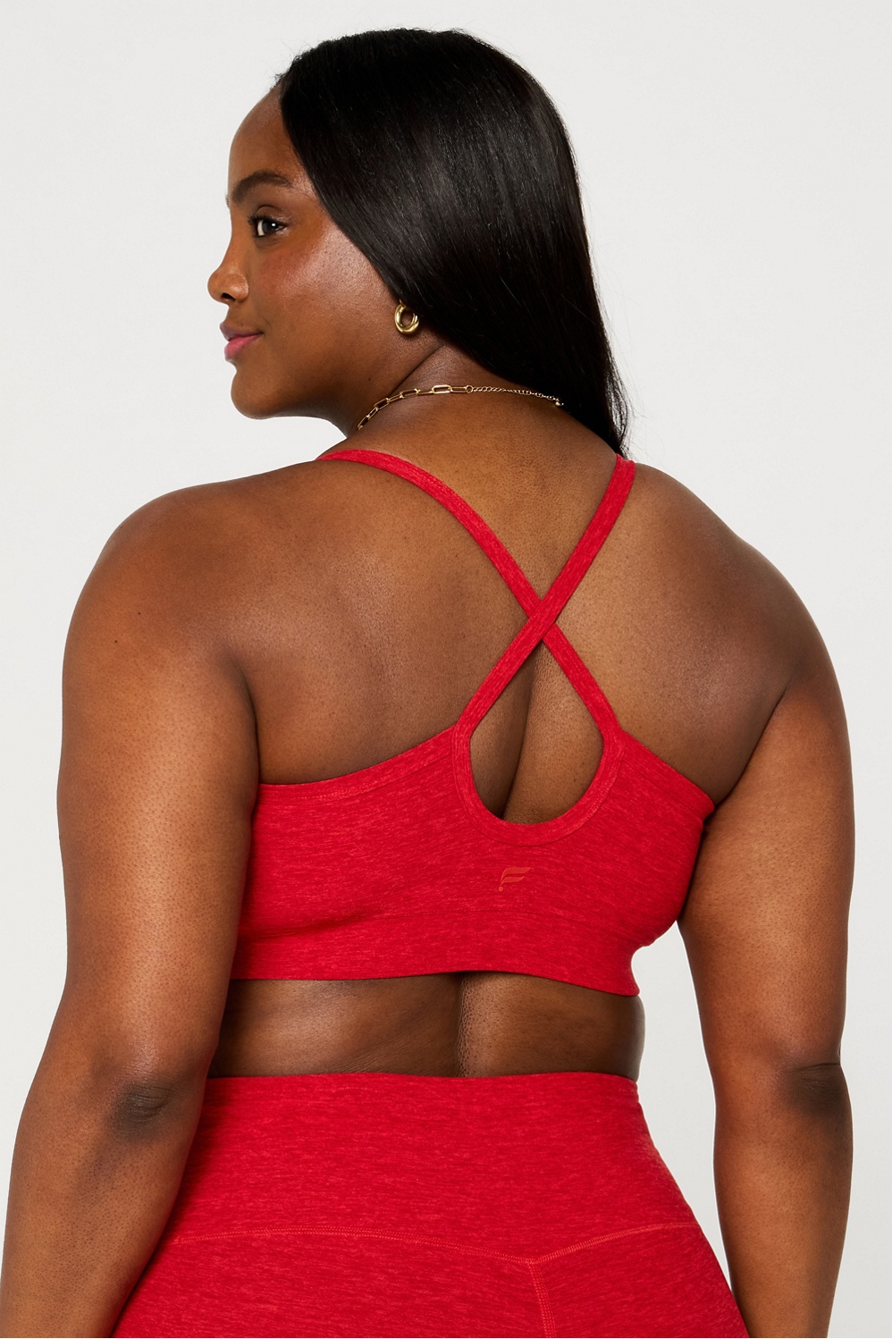 Find your flow. Designed for studio and low-impact workouts, this strappy bra features removable cups and a back keyhole for extra breathability. The ultra-soft HeatherFlex fabric offers a warm brushed feel with medium-light compression.
