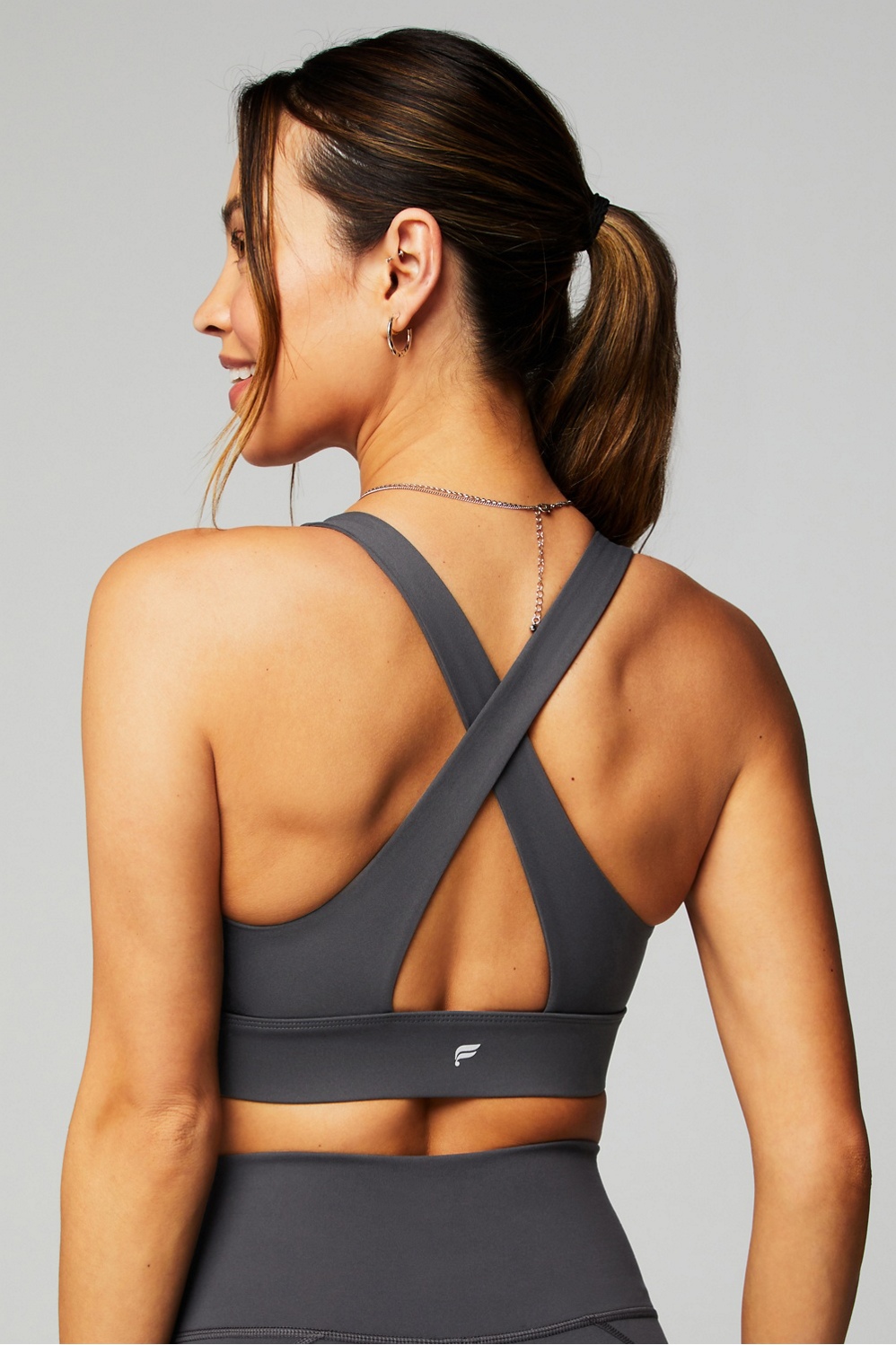Perfect for spin, studio, and hikes, our most flattering bra offers medium-impact support without the squeeze. Designed to solve side spillage, while gently lifting, shaping, and holding you in. Features a ventilated keyhole and crisscrossing straps.