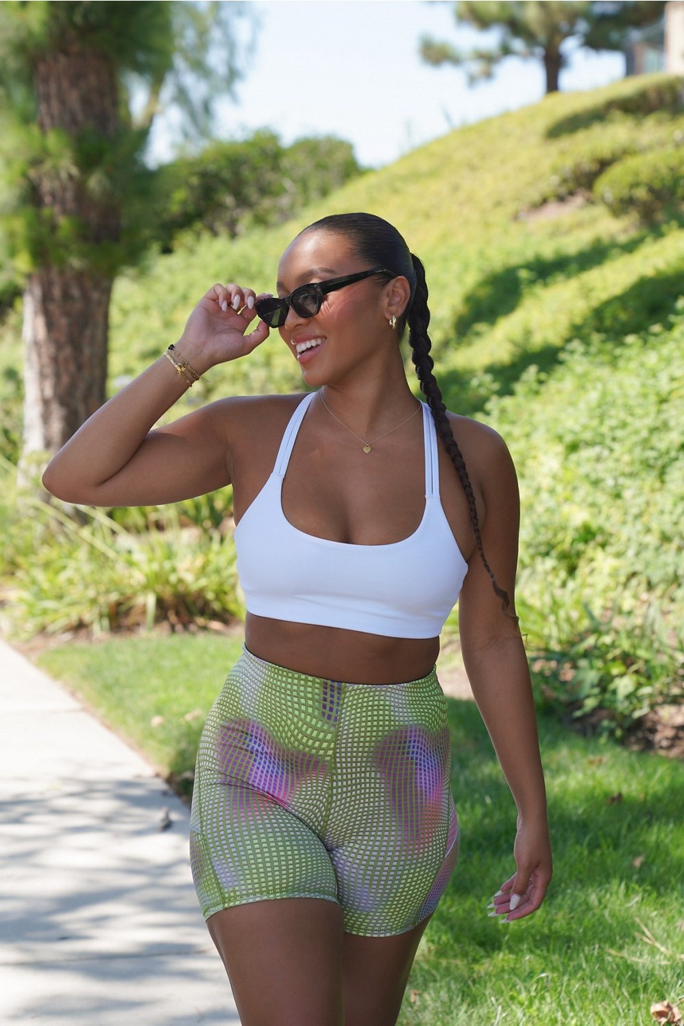 The star of the show. Serve main character energy in this low-impact bra. Designed with a strappy racerback and keyholes for breathability, it stuns on or off the mat.
