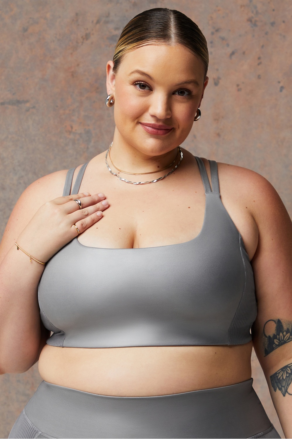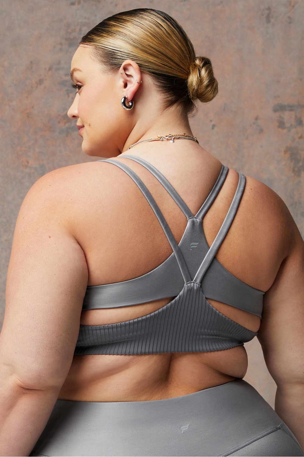 The star of the show. Serve main character energy in this low-impact bra — now in eco-friendly Motion365+ shine fabric. Designed with a strappy racerback and keyholes for breathability, it stuns on or off the mat.