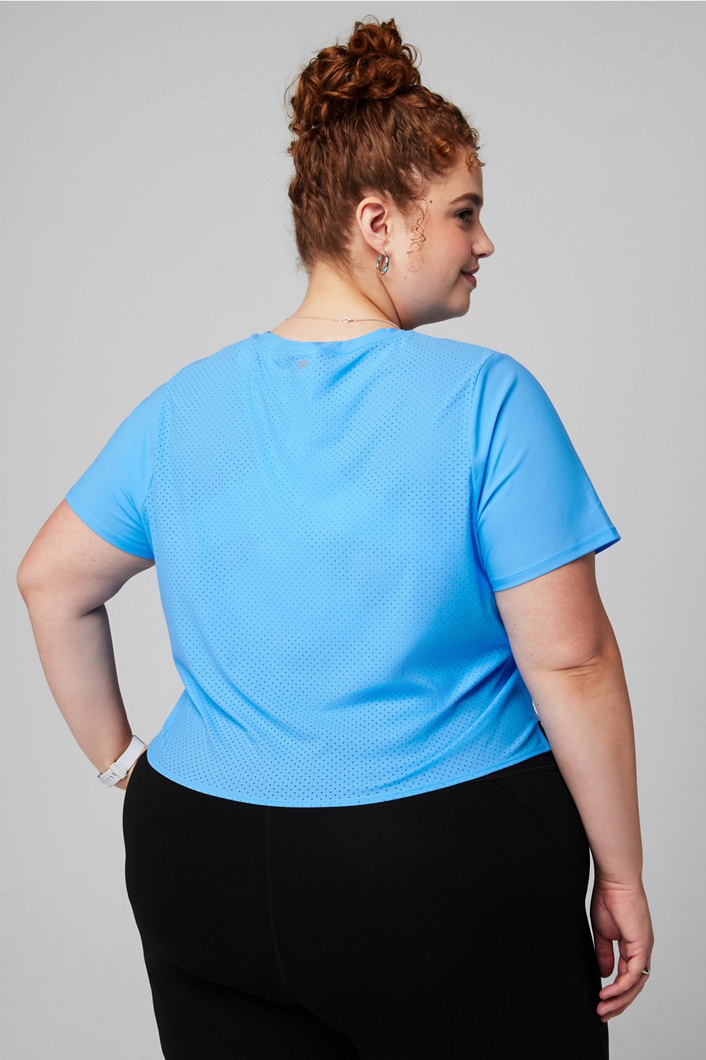 Beat the heat. This lightweight short-sleeve tee is designed for your highest-sweat workouts, with moisture-wicking tech, breathable perforation, and 360 reflectivity. It offers a semi-cropped length and boxy fit for all-day airflow.