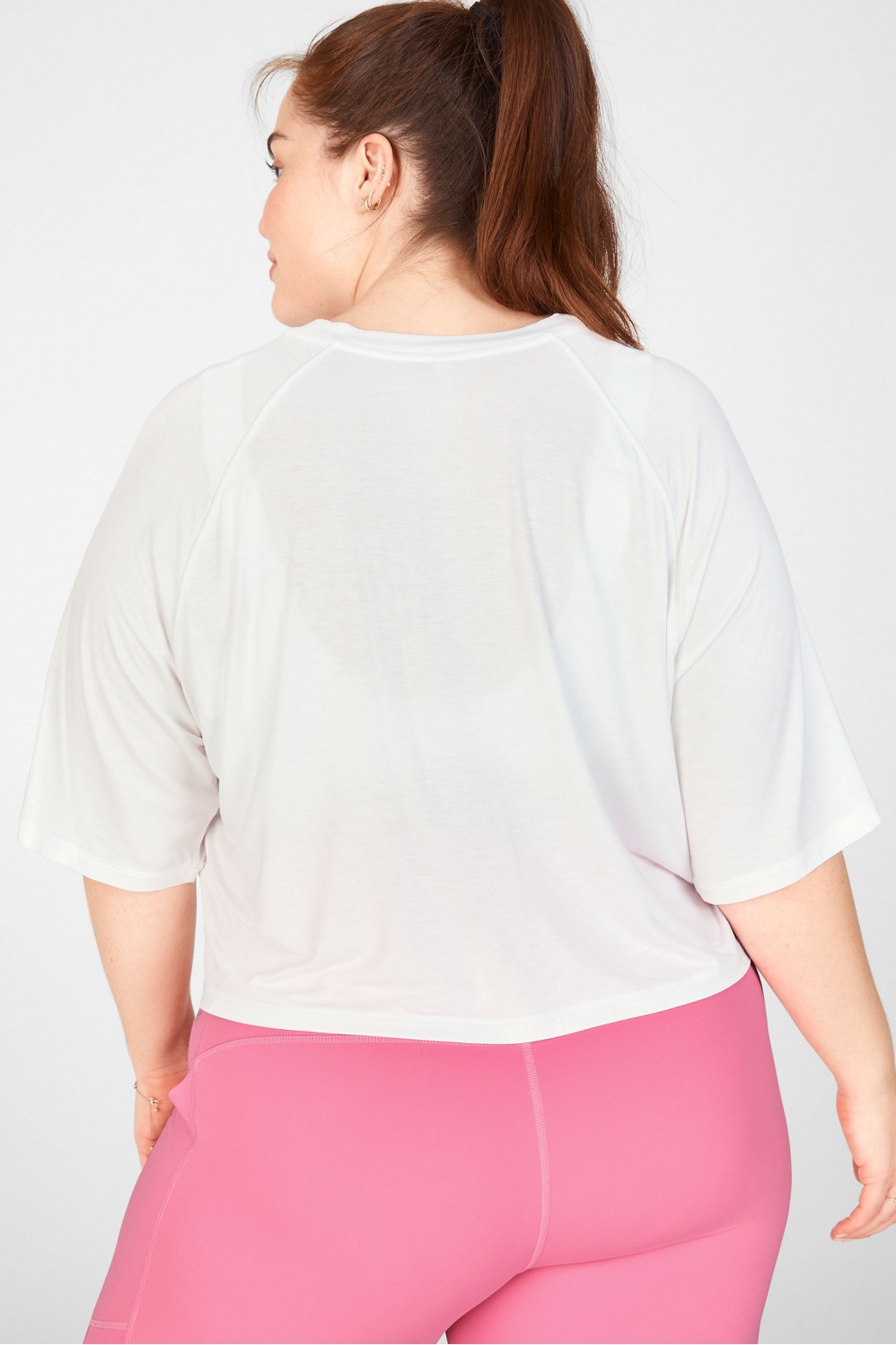A flattering update to your typical sporty style, our raglan-sleeve tee is slightly crop for a relaxed fit—perfect with your favorite high-waisted legging.