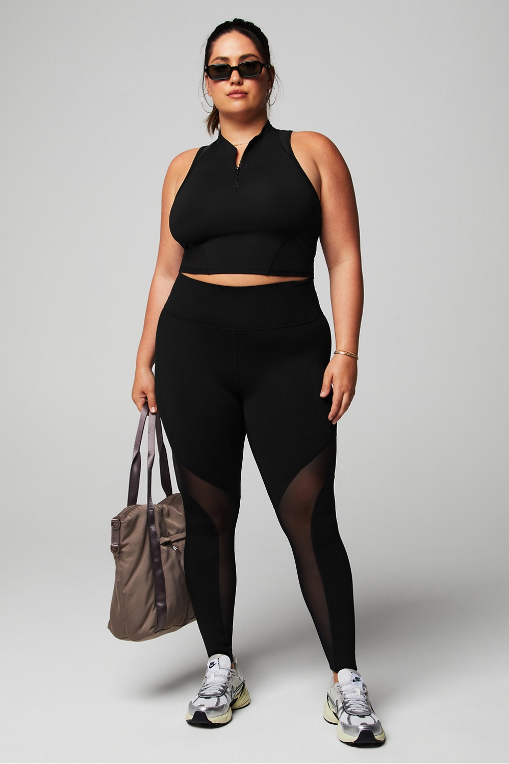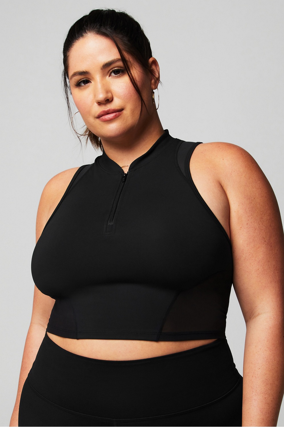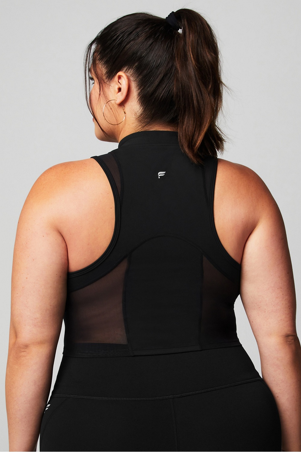 Heatwave layering essential. At the gym or on a run, throw this breathable mockneck tank over your fave sports bra and go. With cooling mesh and recycled fabric, this style is a warm weather must-have.