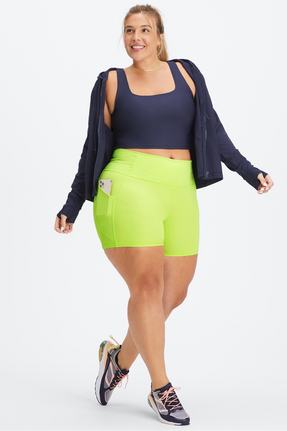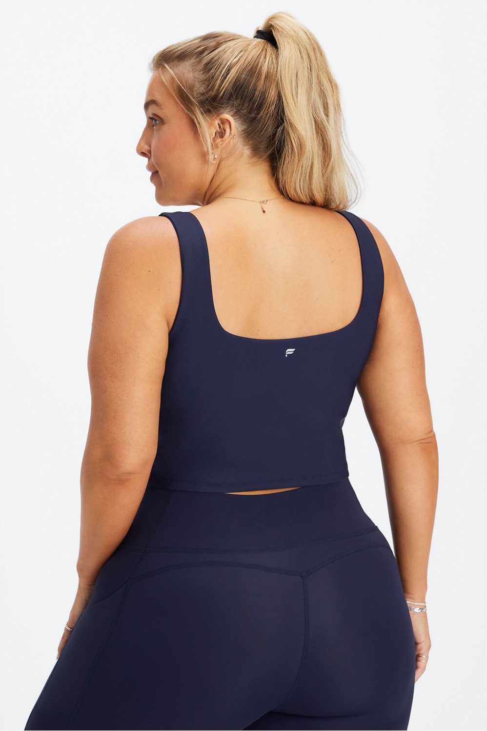 A cropped tank with built-in bra and square neckline, this knit style was designed with at-home leisure in mind.