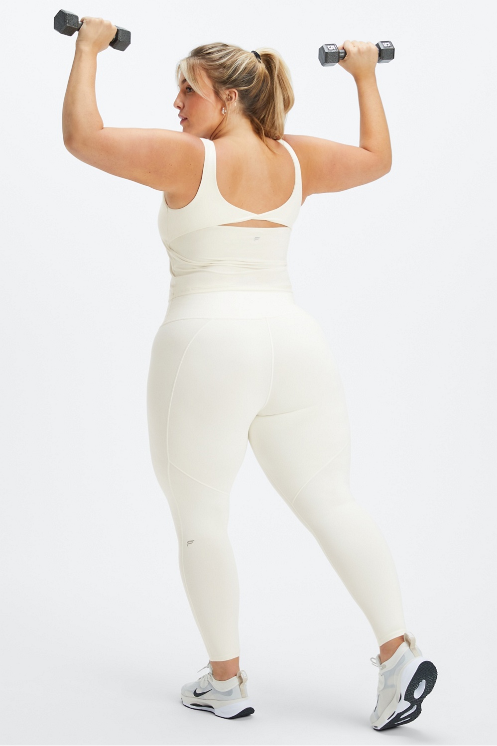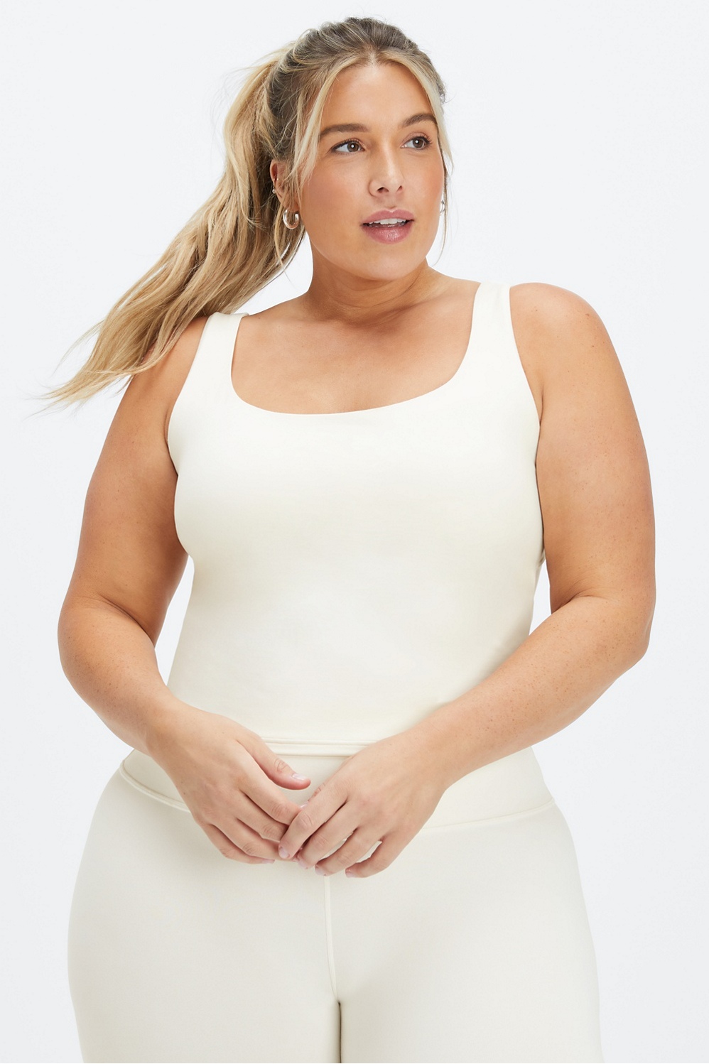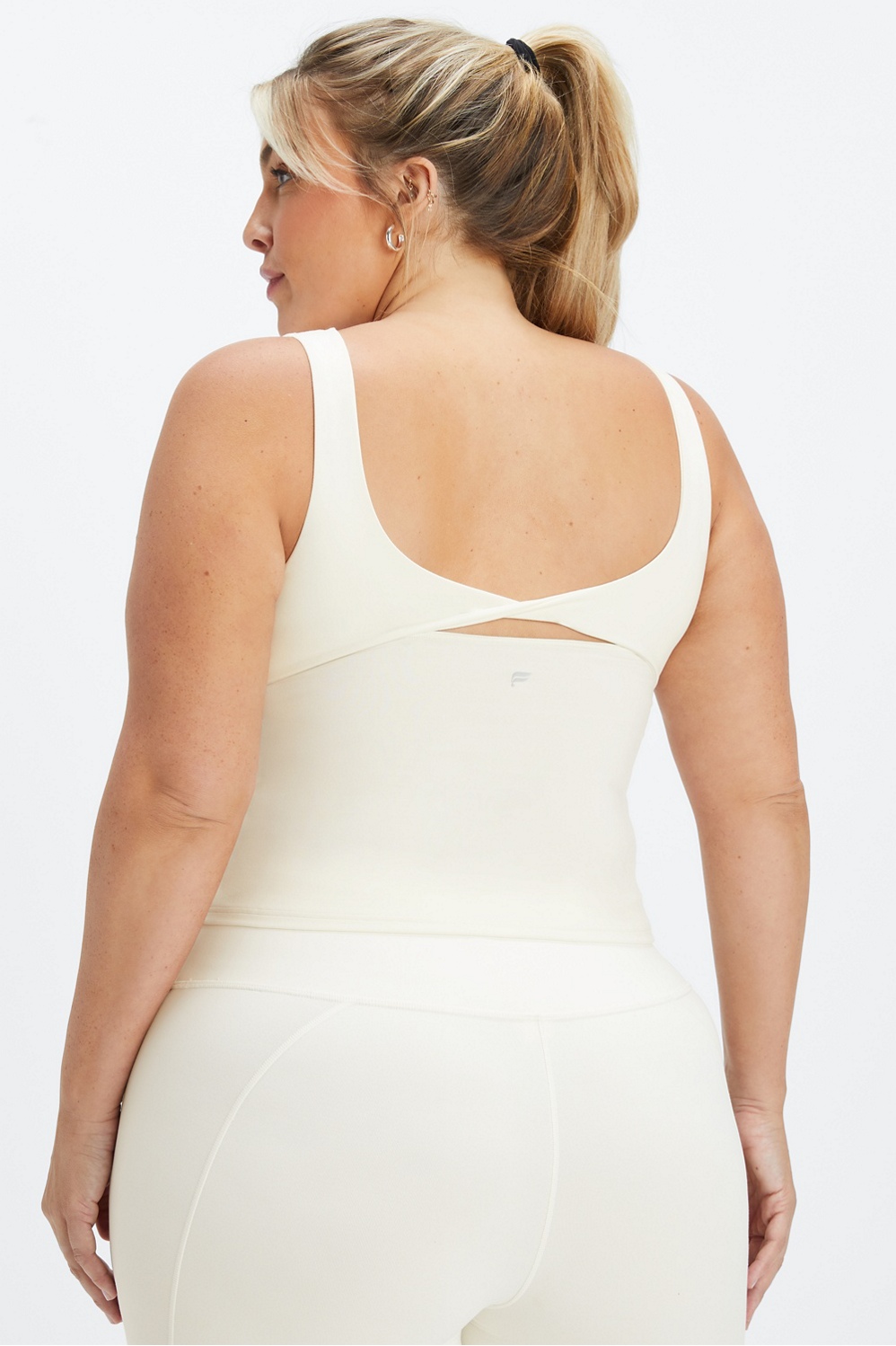 Our wide-strap tank cut from recycled fabric features a stylish twist detail at back and a comfortable (and convenient!) built-in bra.