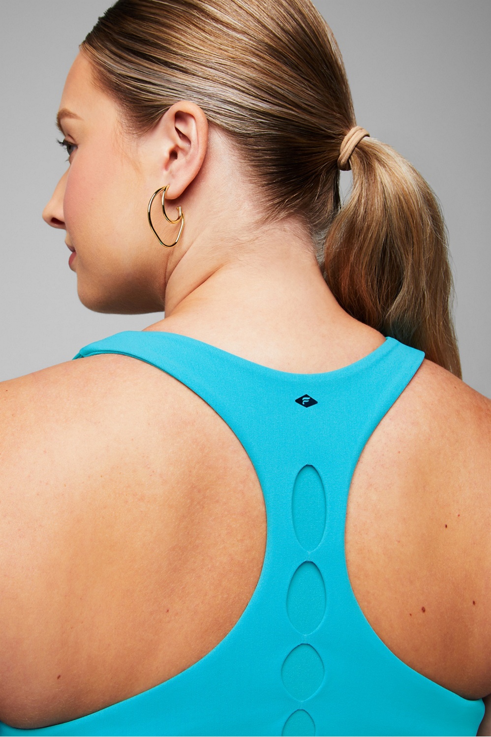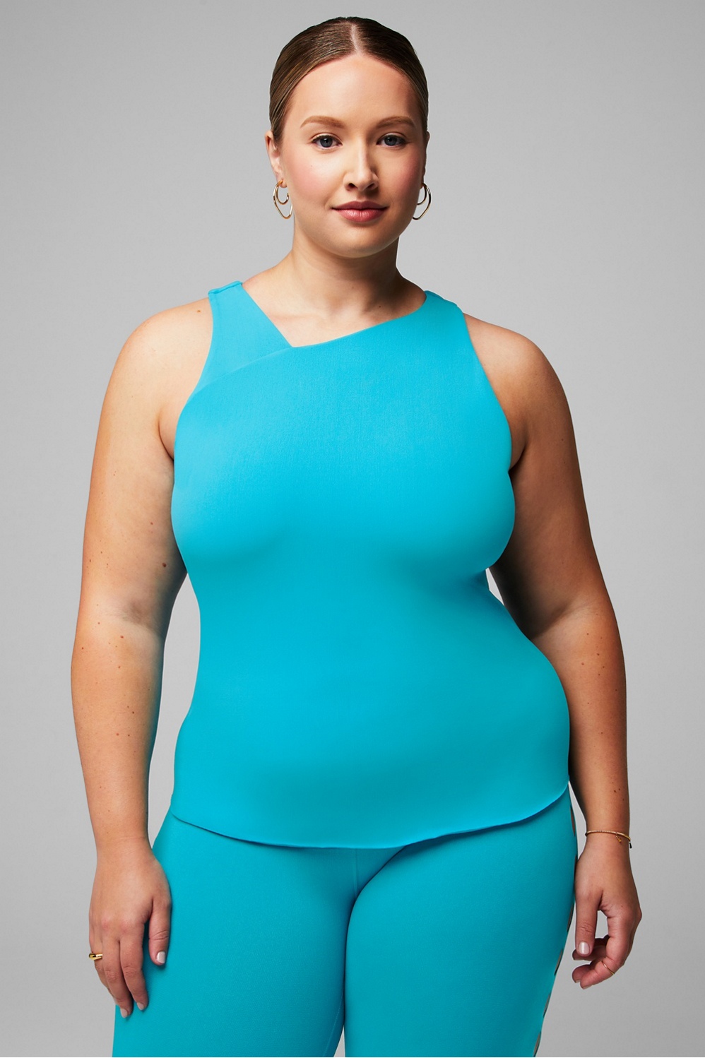 Sculpt yourself. This low-impact top is designed with contouring, targeted compression and extra ventilation to support you in your sweatiest workouts. It features a built-in bra and a trendy asymmetrical neckline.