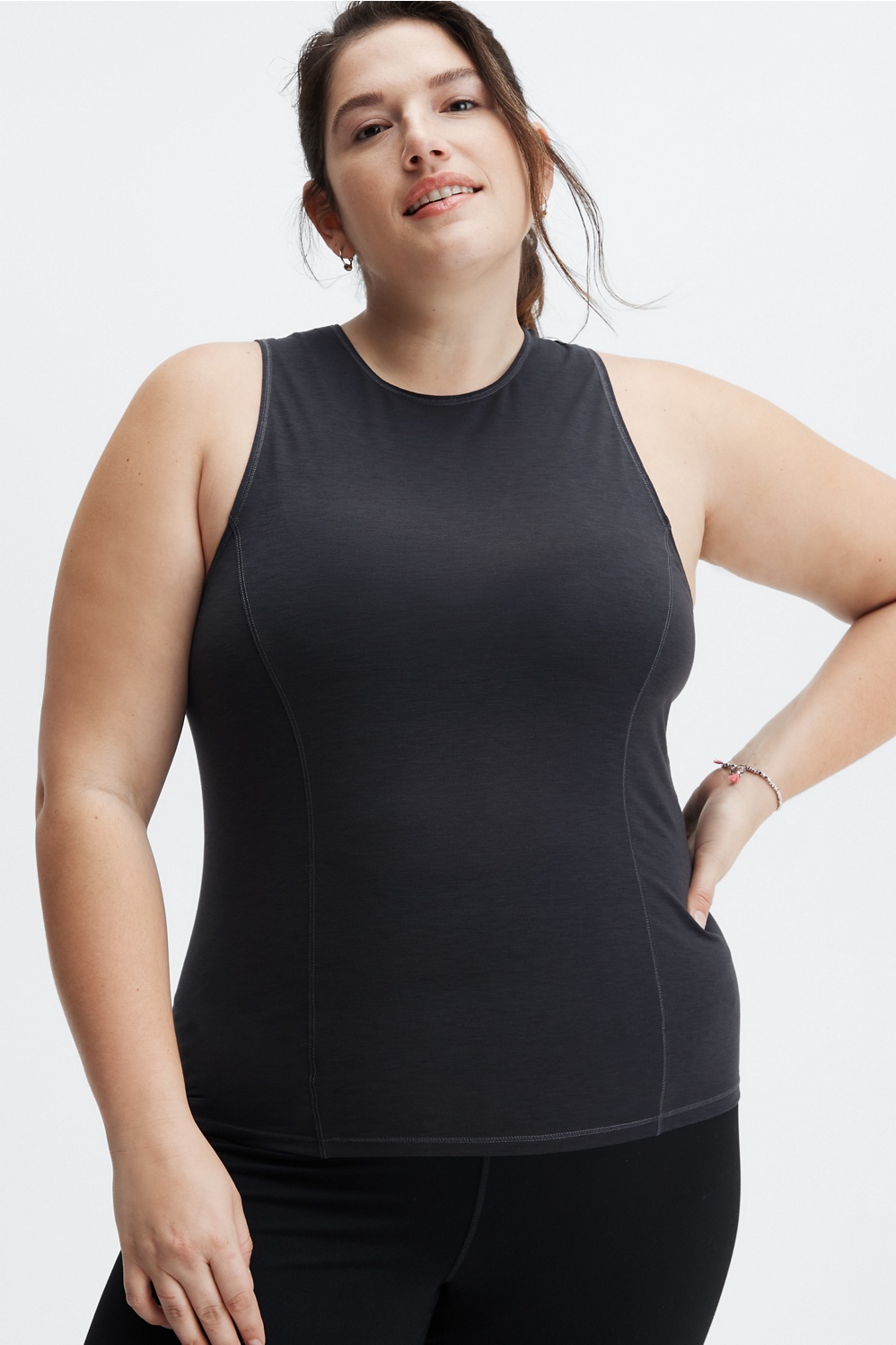 This scoop-neck tank with decorative stitching and fitted silhouette is cut from our sustainable, thermoregulating fabric.