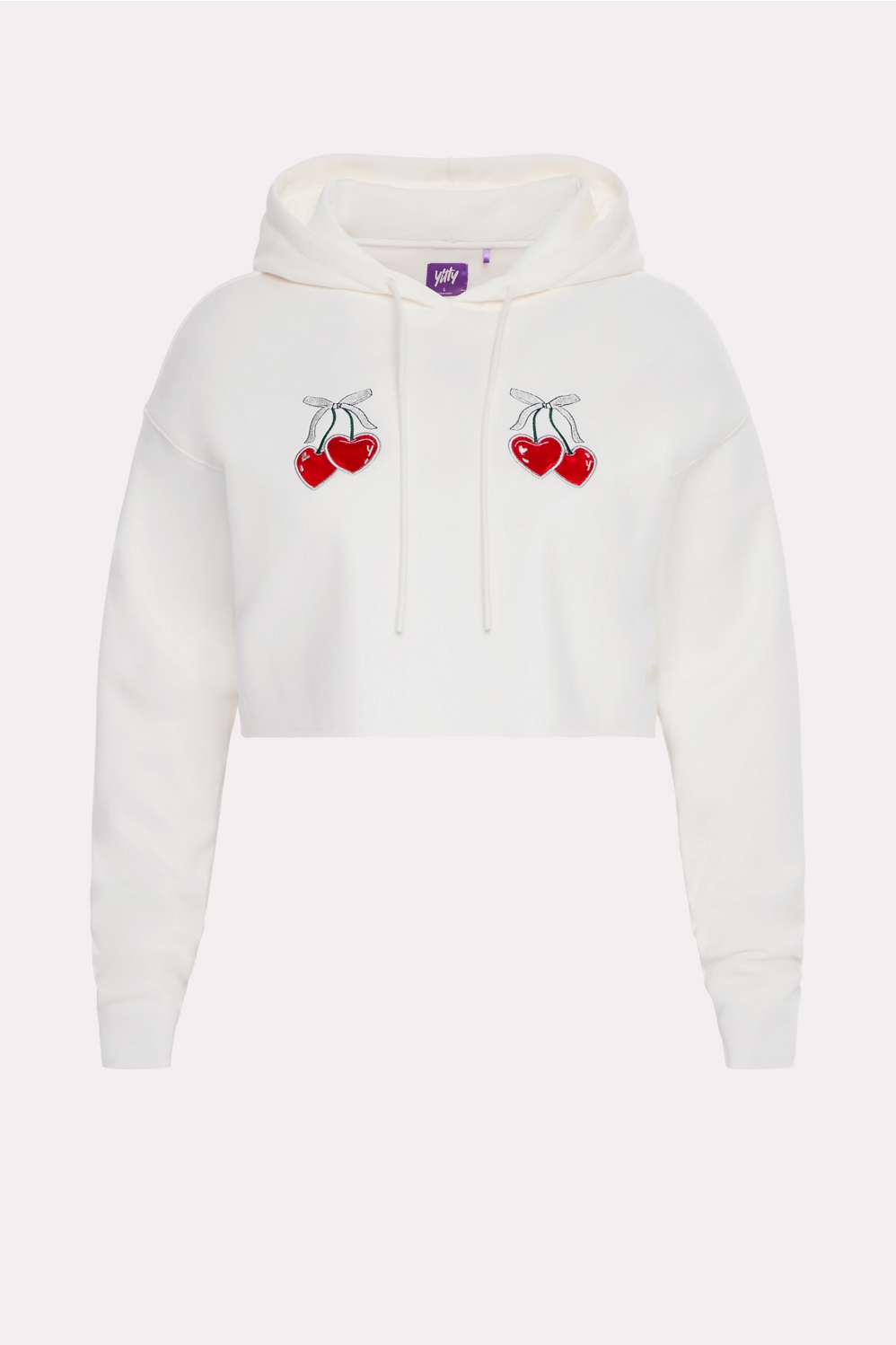 Cozy, cool, and cherry-picked for comfort. Featuring sweet cherry details, a lined hood with an adjustable drawstring, and raw edges for an effortlessly cool look. Pair with Cozy Fleece Joggers for a casual combo.
