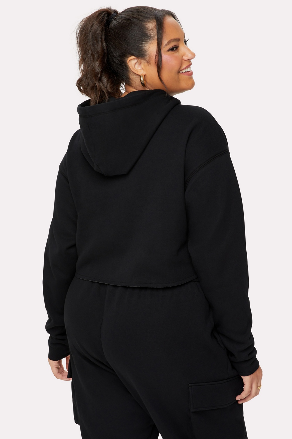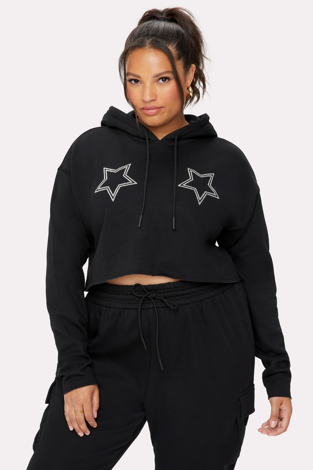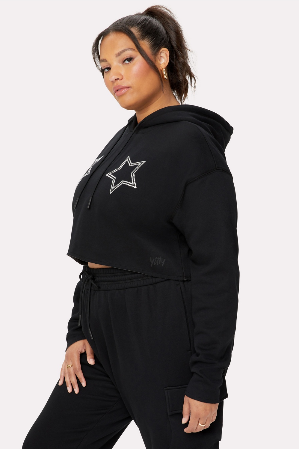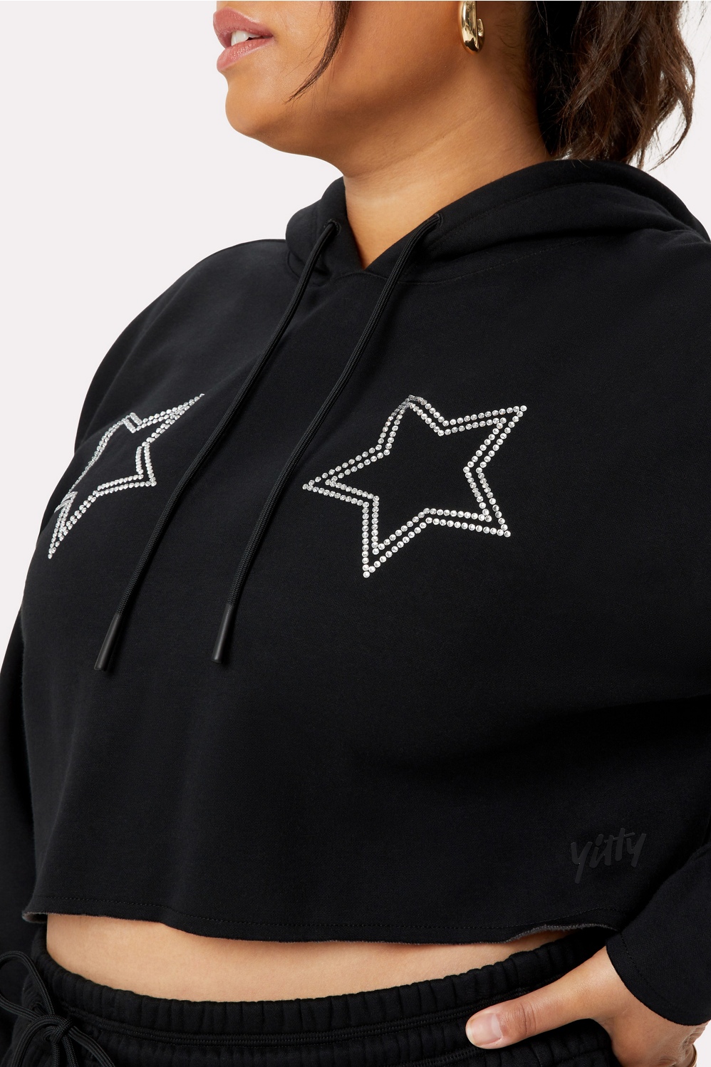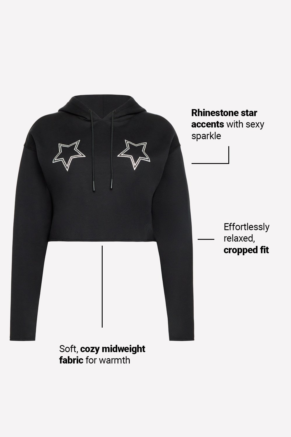 Make a statement with this eye-catching cropped hoodie. Starry rhinestone details and raw edges turn up the effortlessly cool vibe. Rock it with matching Cozy Fleece Joggers for all-day softness and comfort.