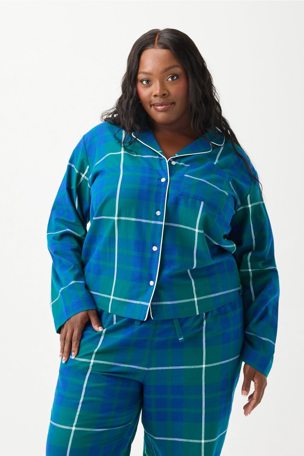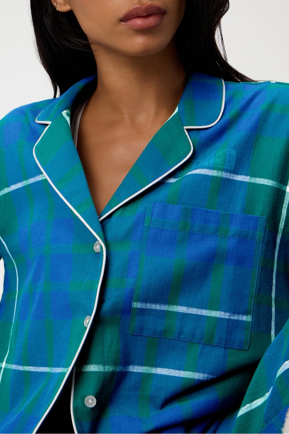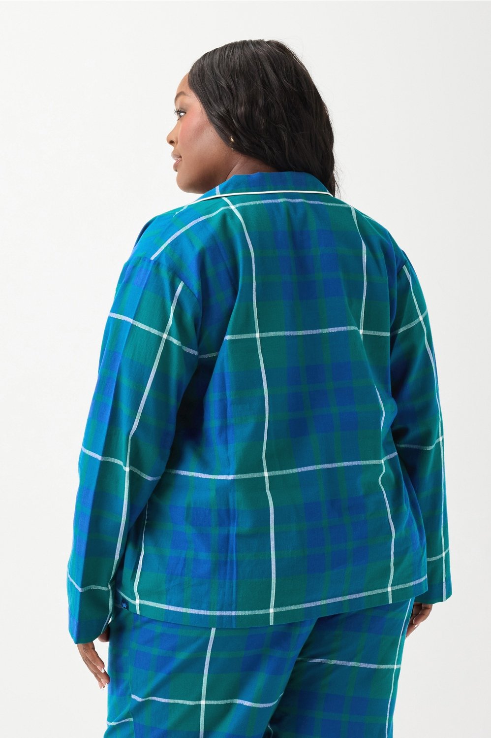 The pajama top you’ll reach for all year long. Cut from our lightweight, soft-brushed flannel, its relaxed silhouette blends classic details like satin piping, pearlized buttons, and a notched collar, with a breezy, modern spin.