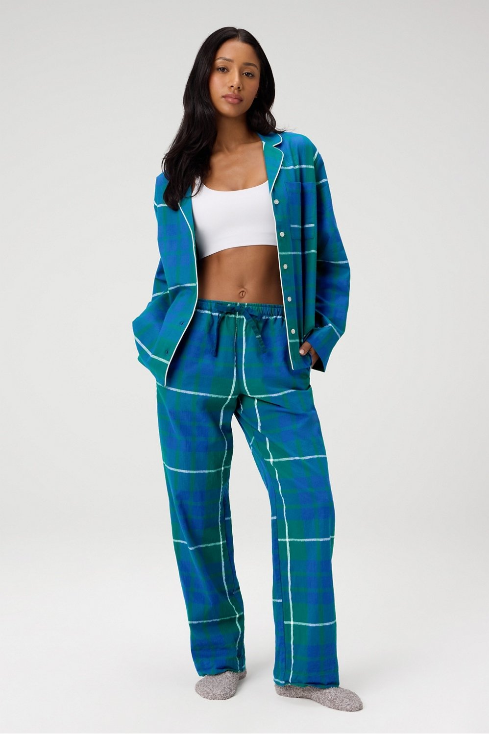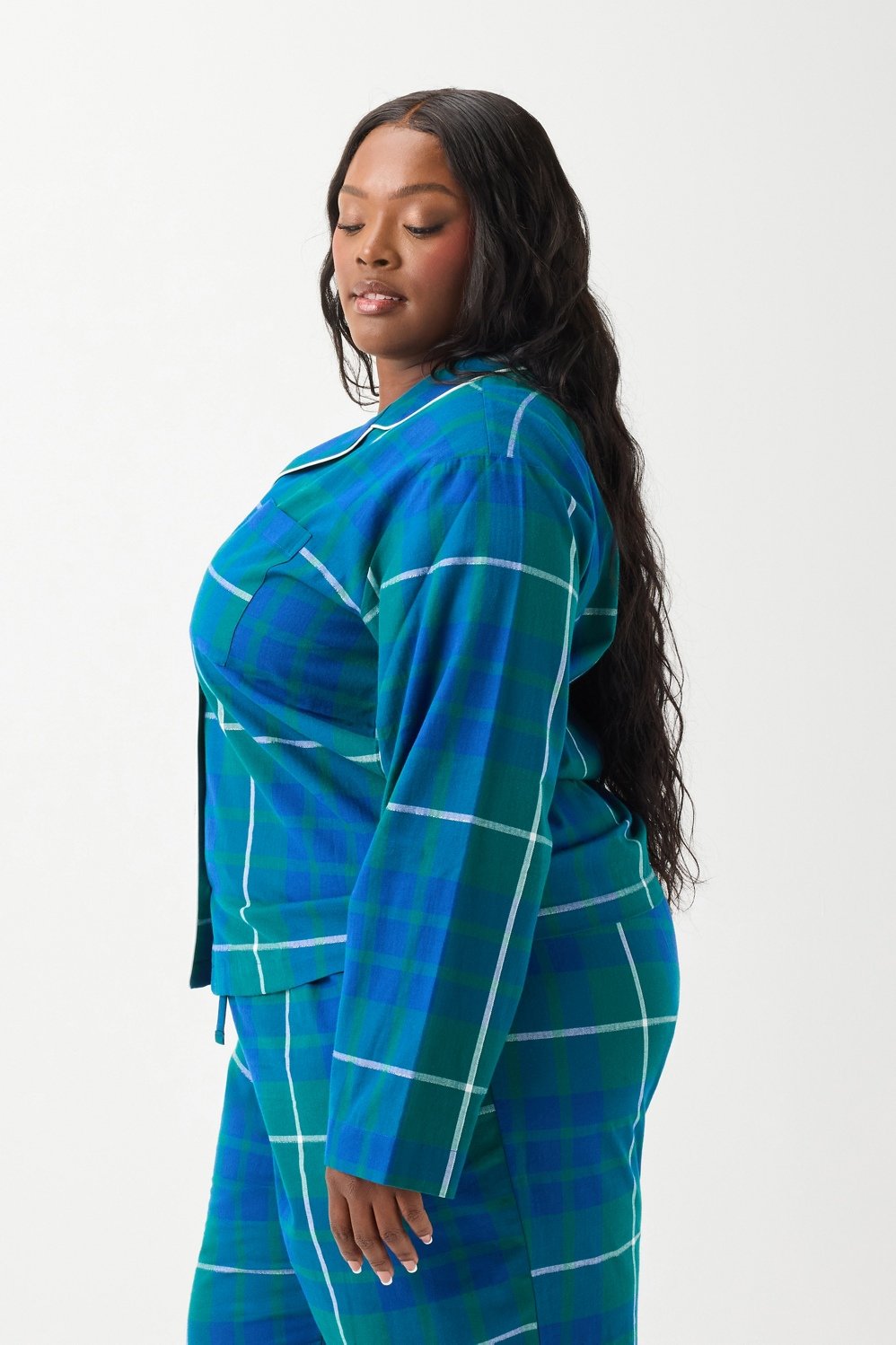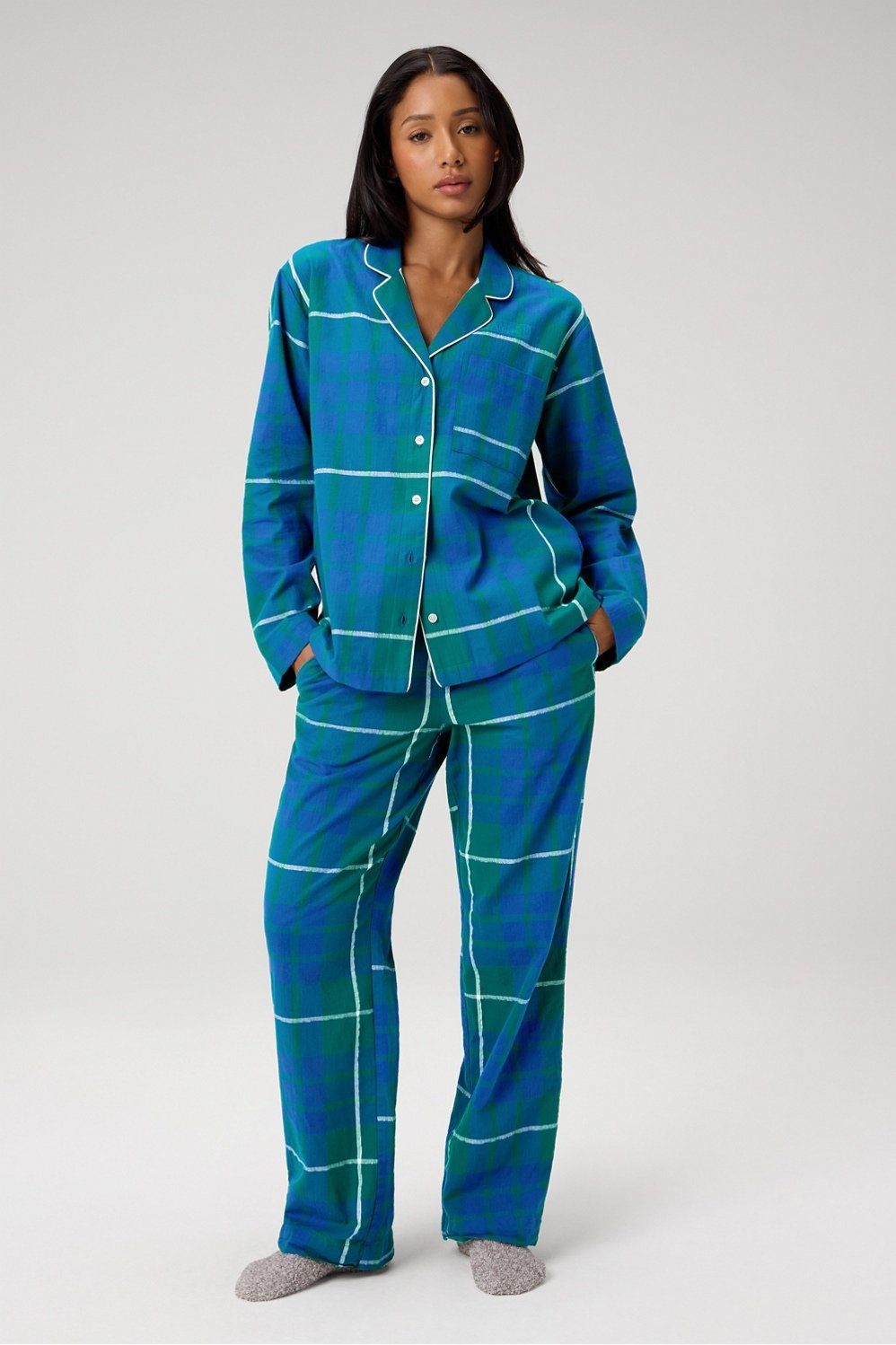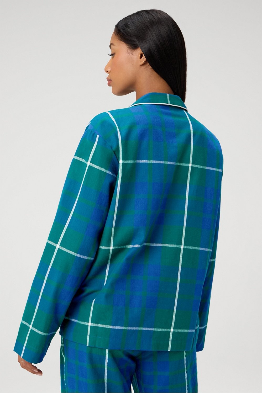The pajama top you’ll reach for all year long. Cut from our lightweight, soft-brushed flannel, its relaxed silhouette blends classic details like satin piping, pearlized buttons, and a notched collar, with a breezy, modern spin.