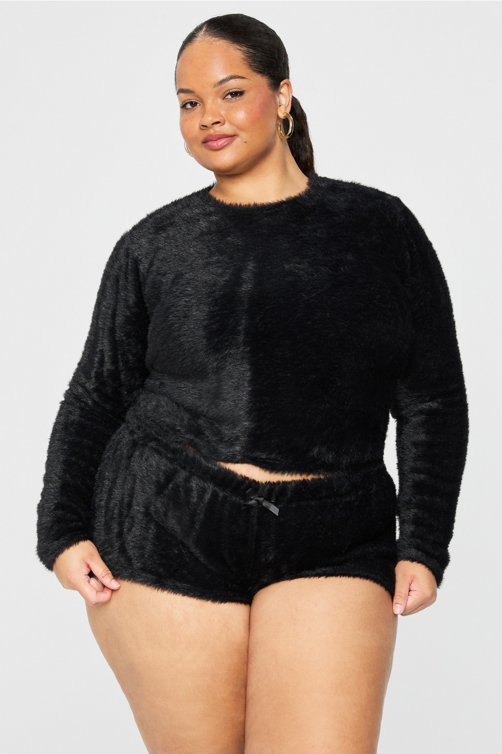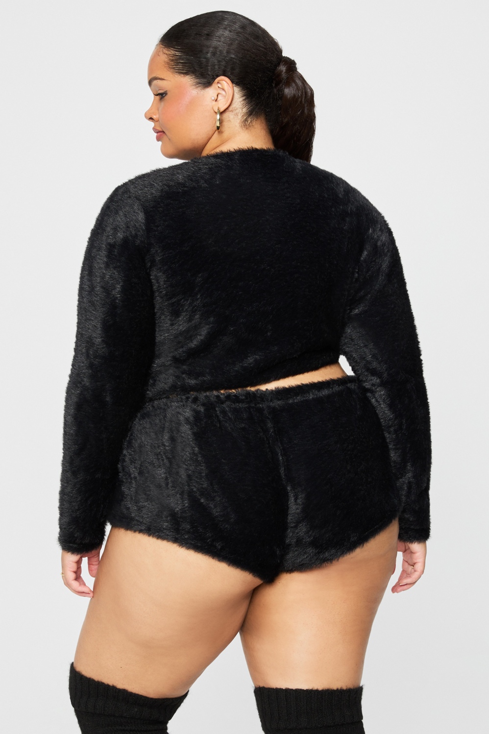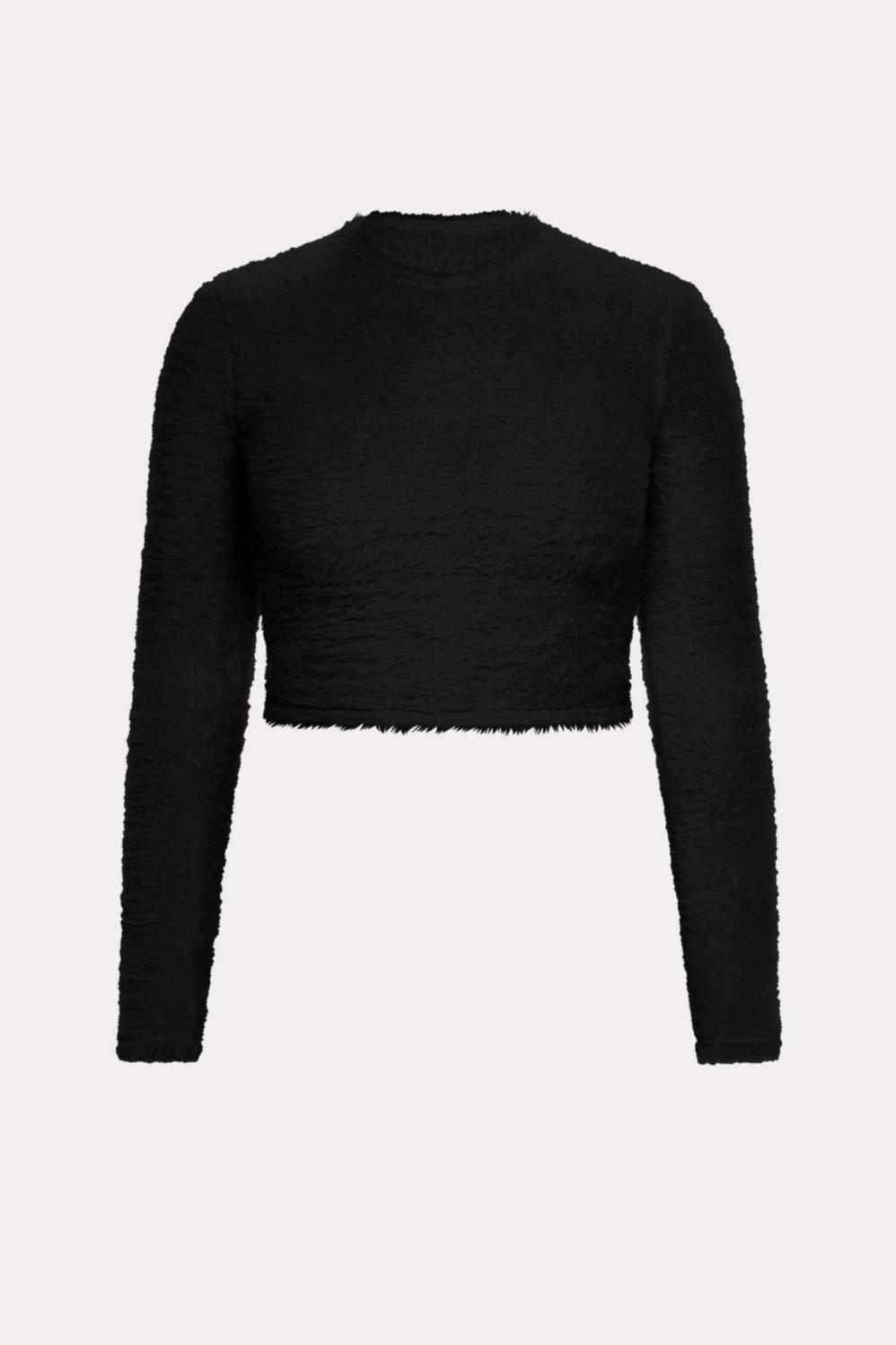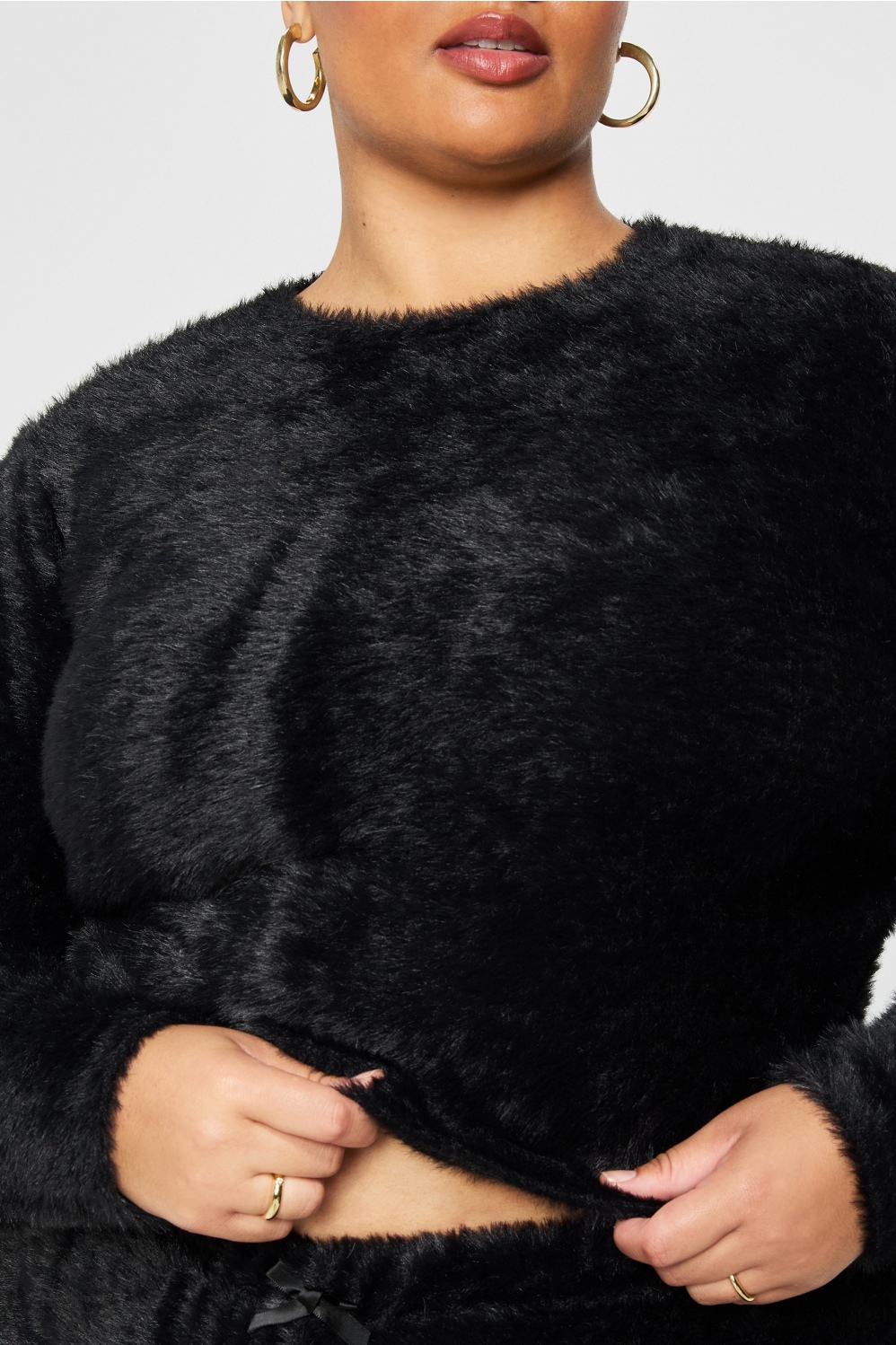 Sweet and sexy—just like you. This lightweight long sleeve is crafted with luxuriously fuzzy, faux mohair fabric. Featuring a classic crew neck with a flattering cropped fit. Make it a match with our Fuzz Me Lounge Short.