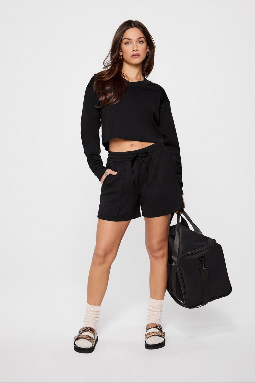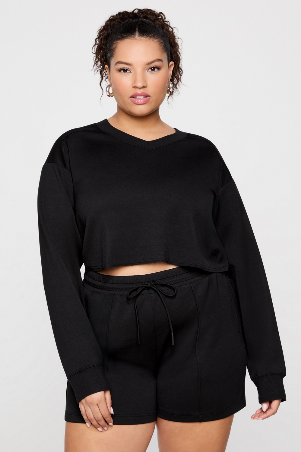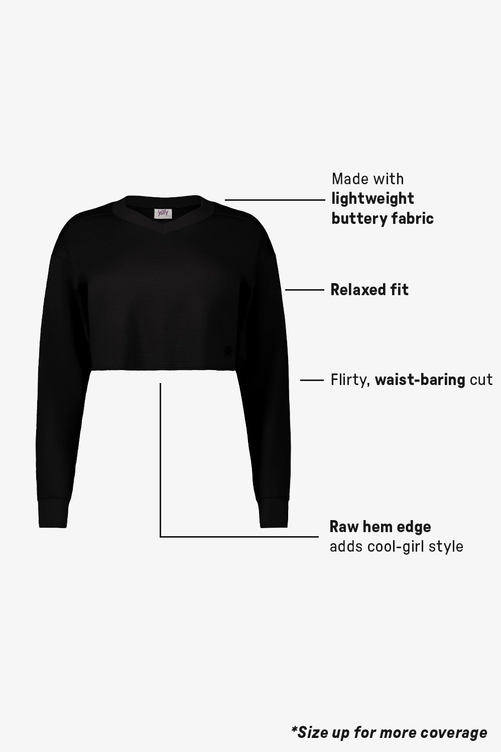 Look polished in this premium modal sweatshirt designed with lightweight, buttery fabric that perfectly glides over your skin. Features raw hem details and a cropped fit that shows off your waist.