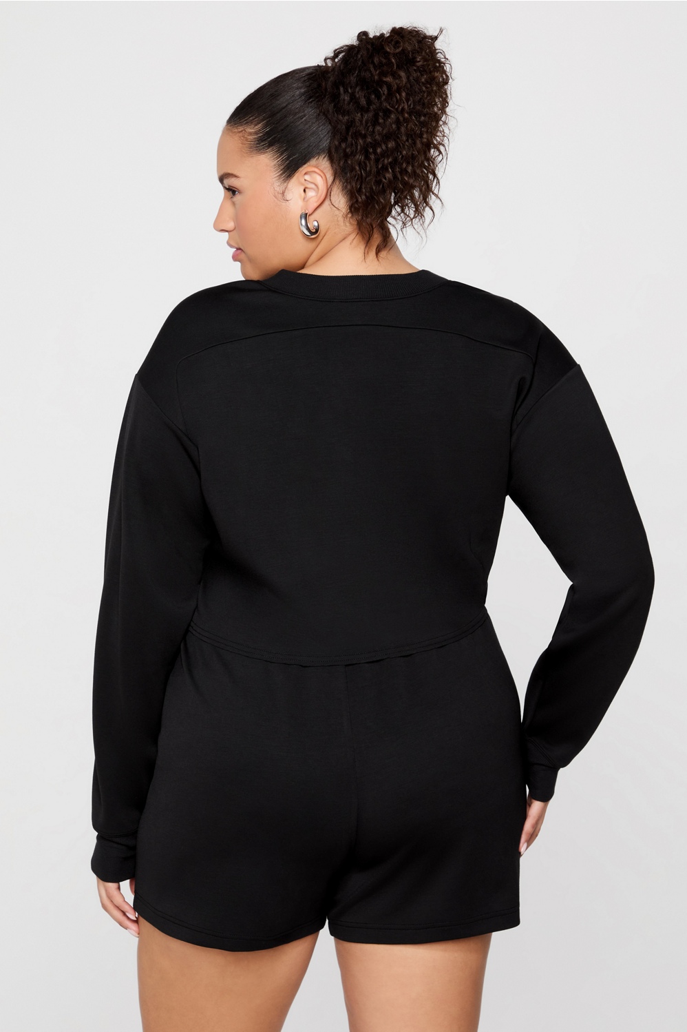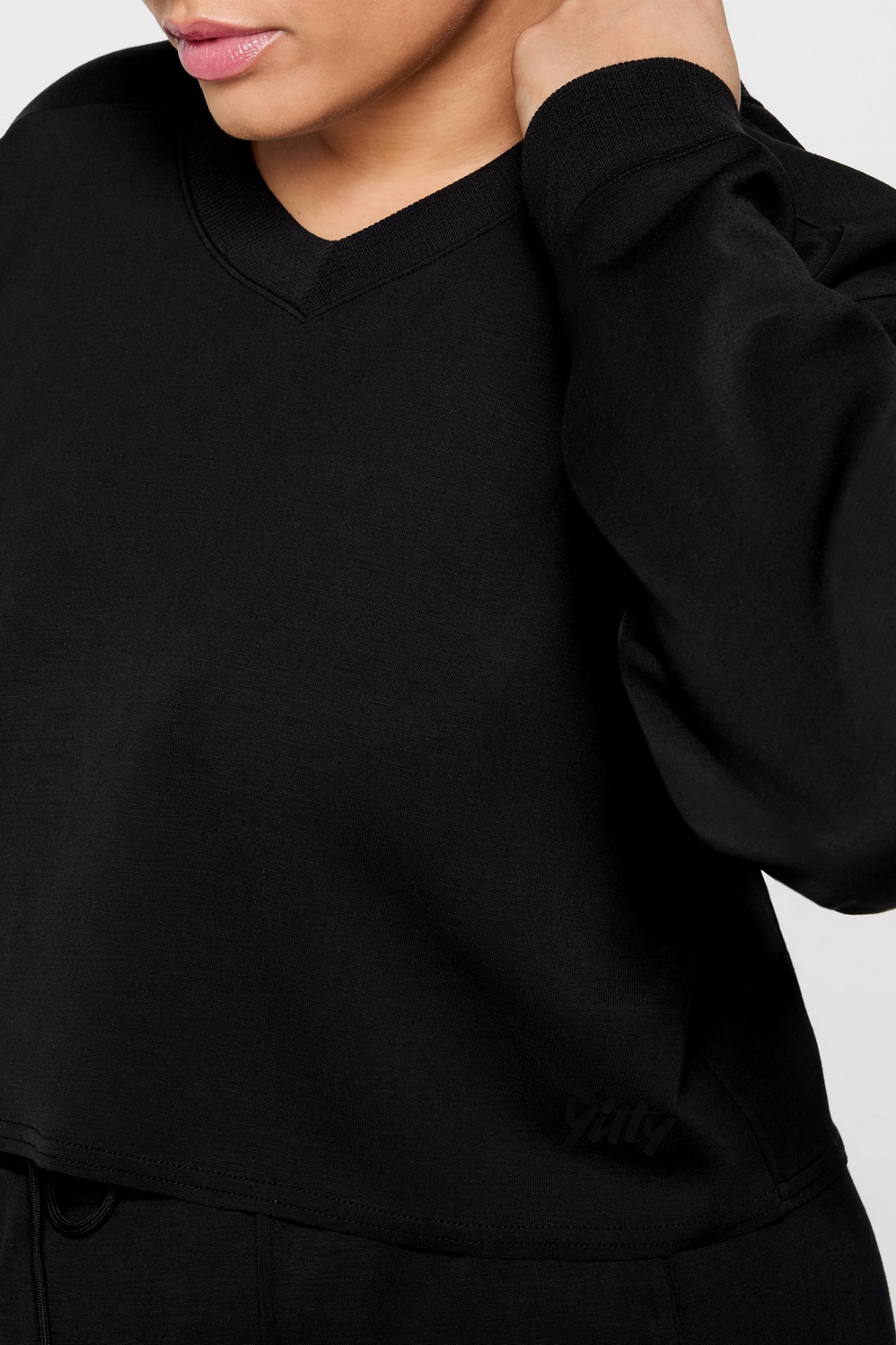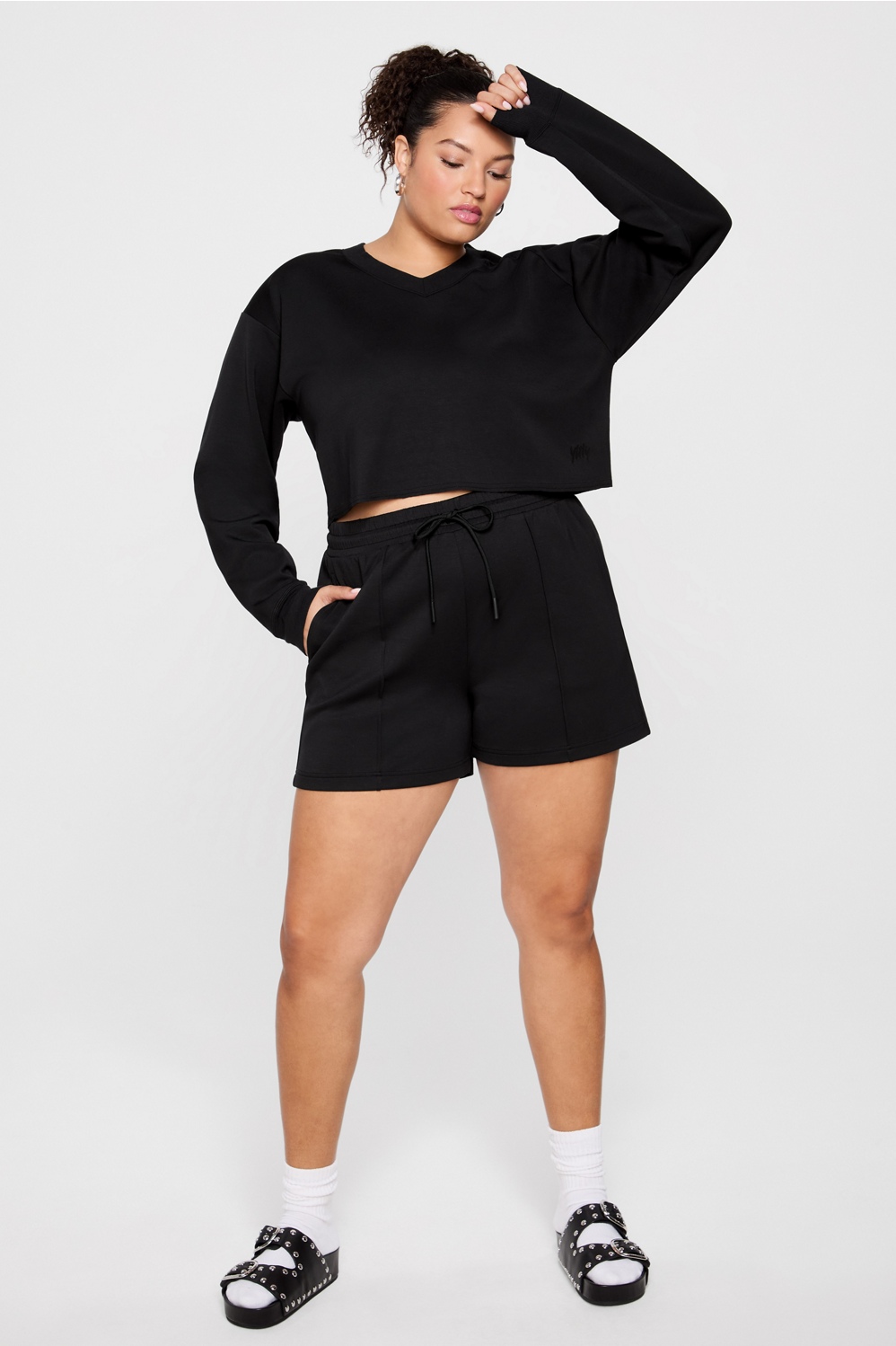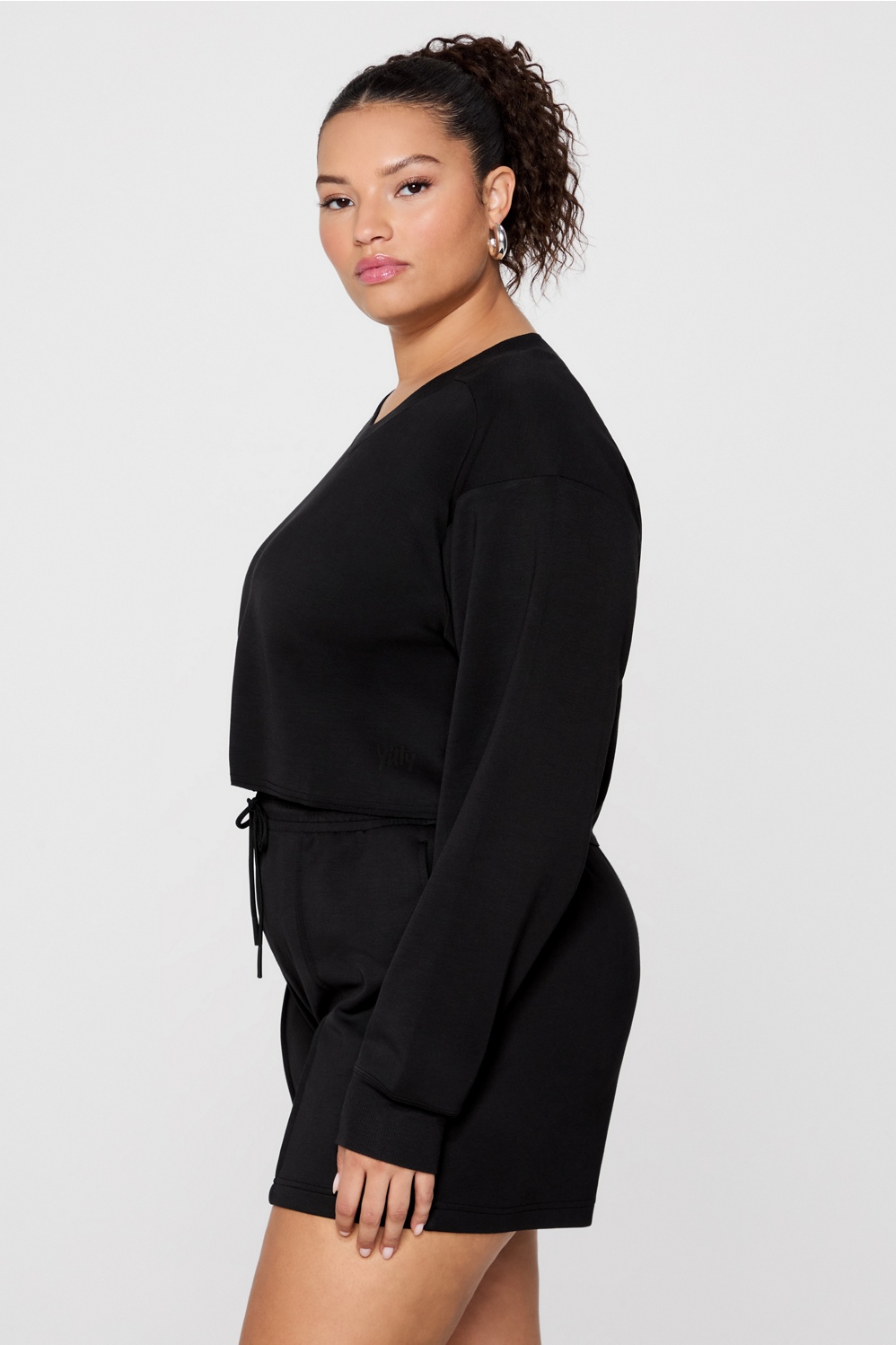 Look polished in this premium modal sweatshirt designed with lightweight, buttery fabric that perfectly glides over your skin. Features raw hem details and a cropped fit that shows off your waist.