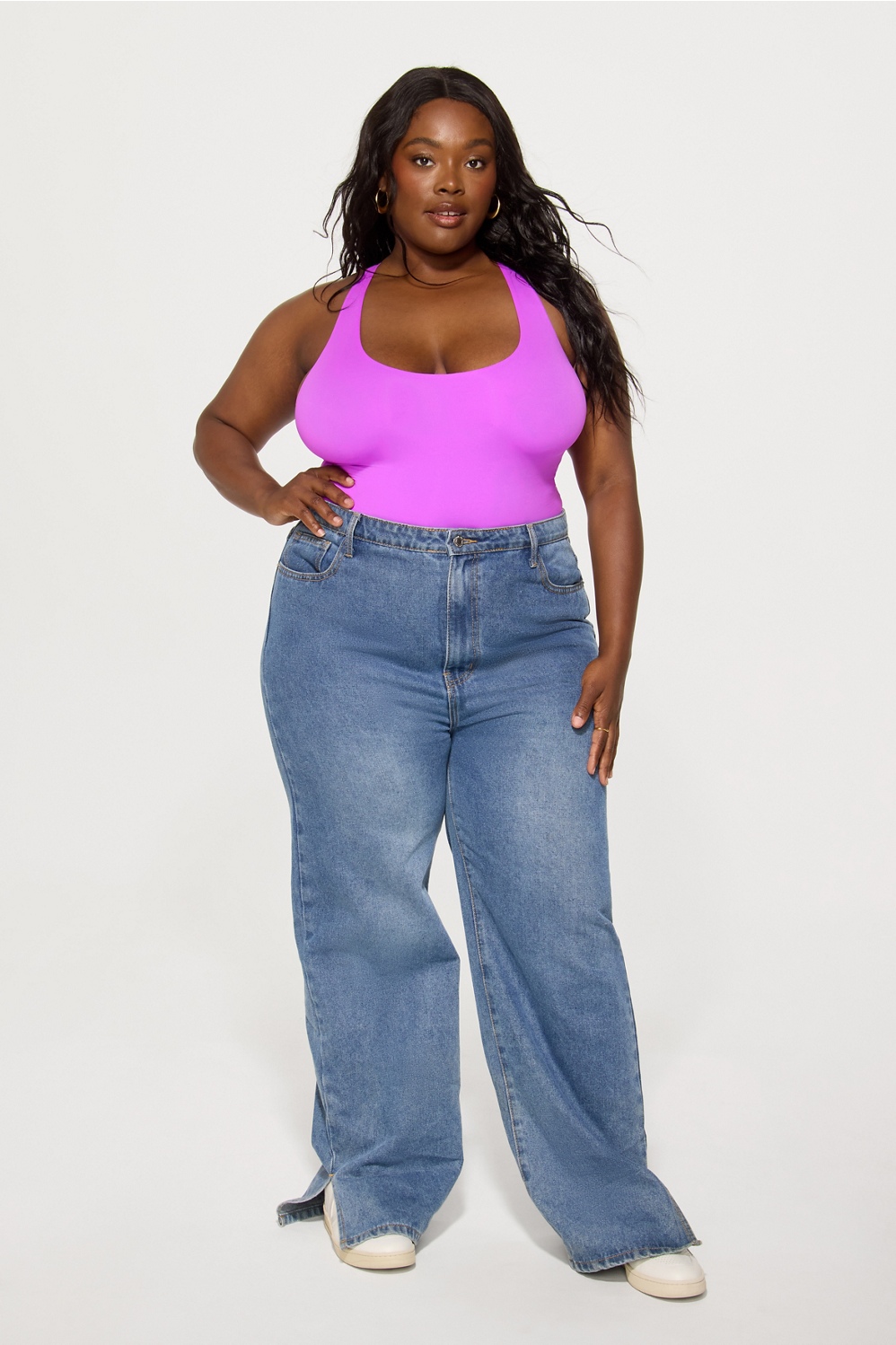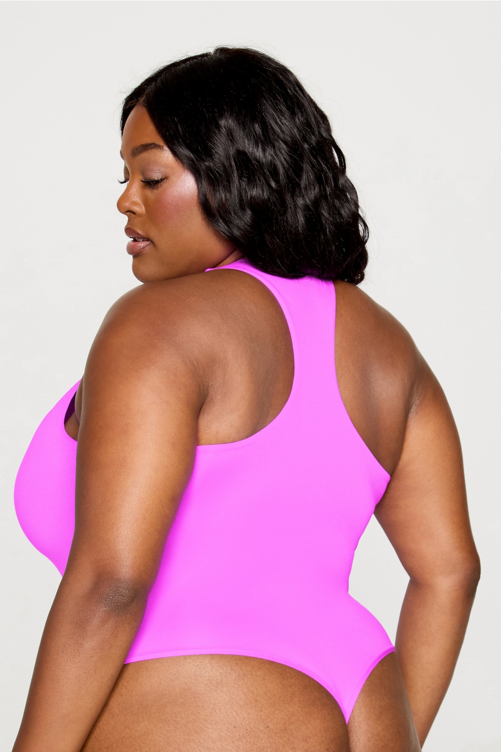 Your new favorite base layer. Made with soft, stretchy fabric and double-layered throughout with a lightweight, barely-there feel. Featuring a racerback design and a no-show thong bottom. Getting dressed is easy—just add your favorite bottoms.