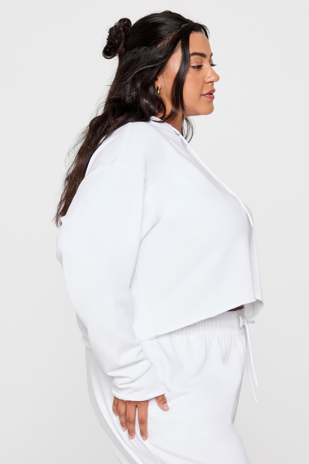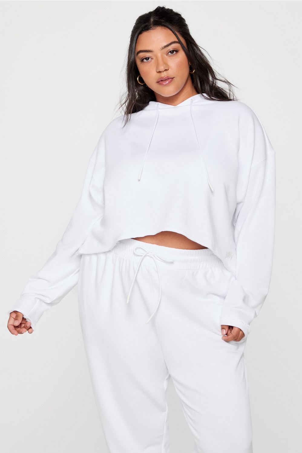 Minimal, modern, and made for daily wear. Designed with lightweight, recycled French terry fabric, this hoodie delivers a perfectly drapey fit, plus a cropped cut that highlights your waist.
