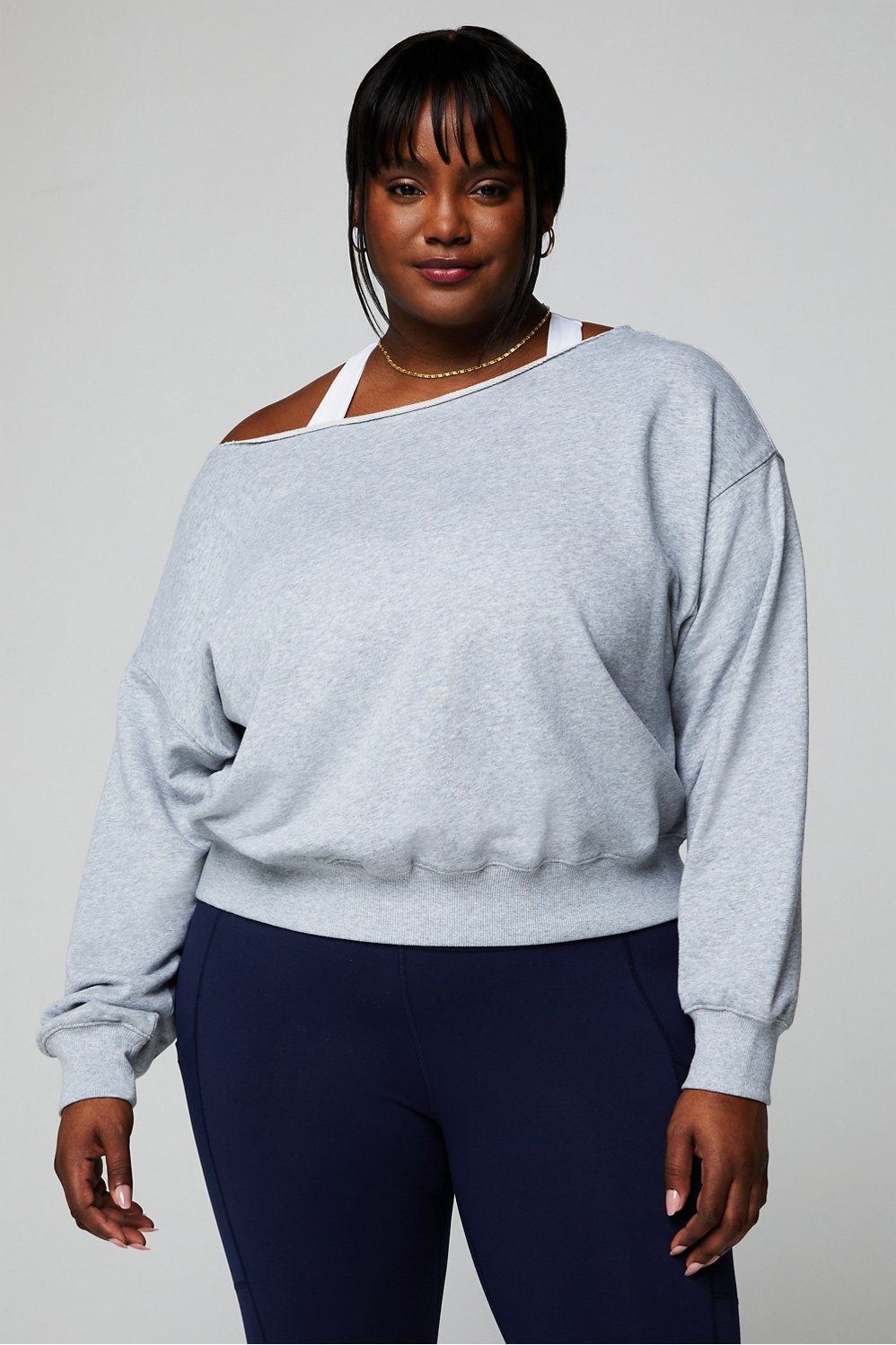A fashion-forward take on your favorite sweatshirt. This lightweight style is crafted in recycled Year Round Terry fabric and features the ultimate lived-in feel with a cute off-shoulder silhouette.
