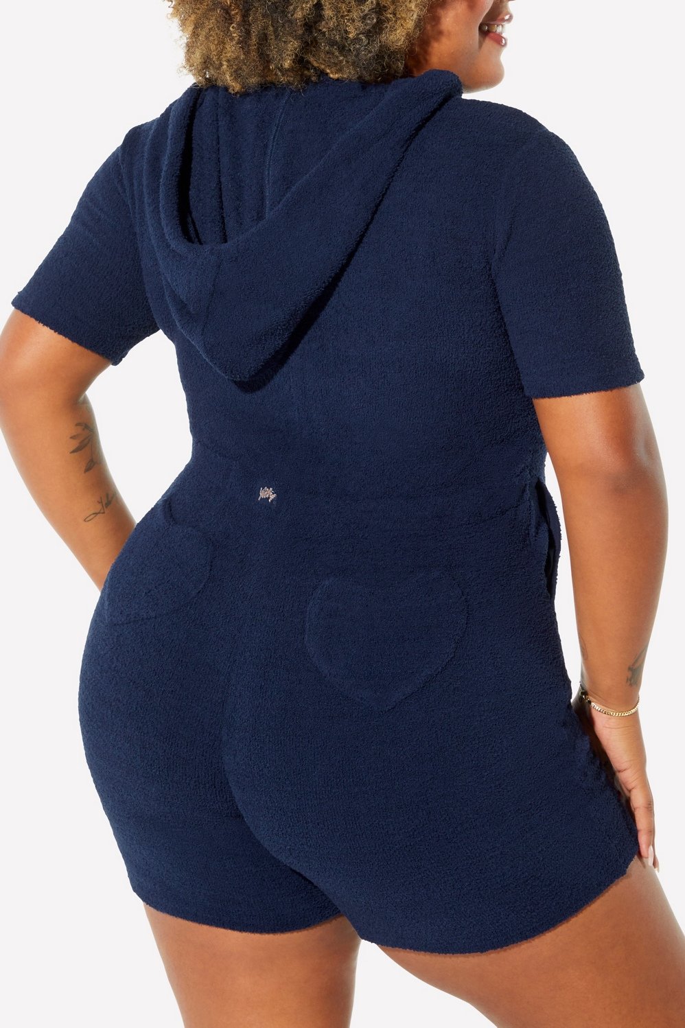 Our famous Onesie, now in a sexy short version! Made from soft and cozy fabric, our Short Onesie features side pockets, elastic at the waist, a front zipper, comfy hoodie, and heart-shaped back pockets.