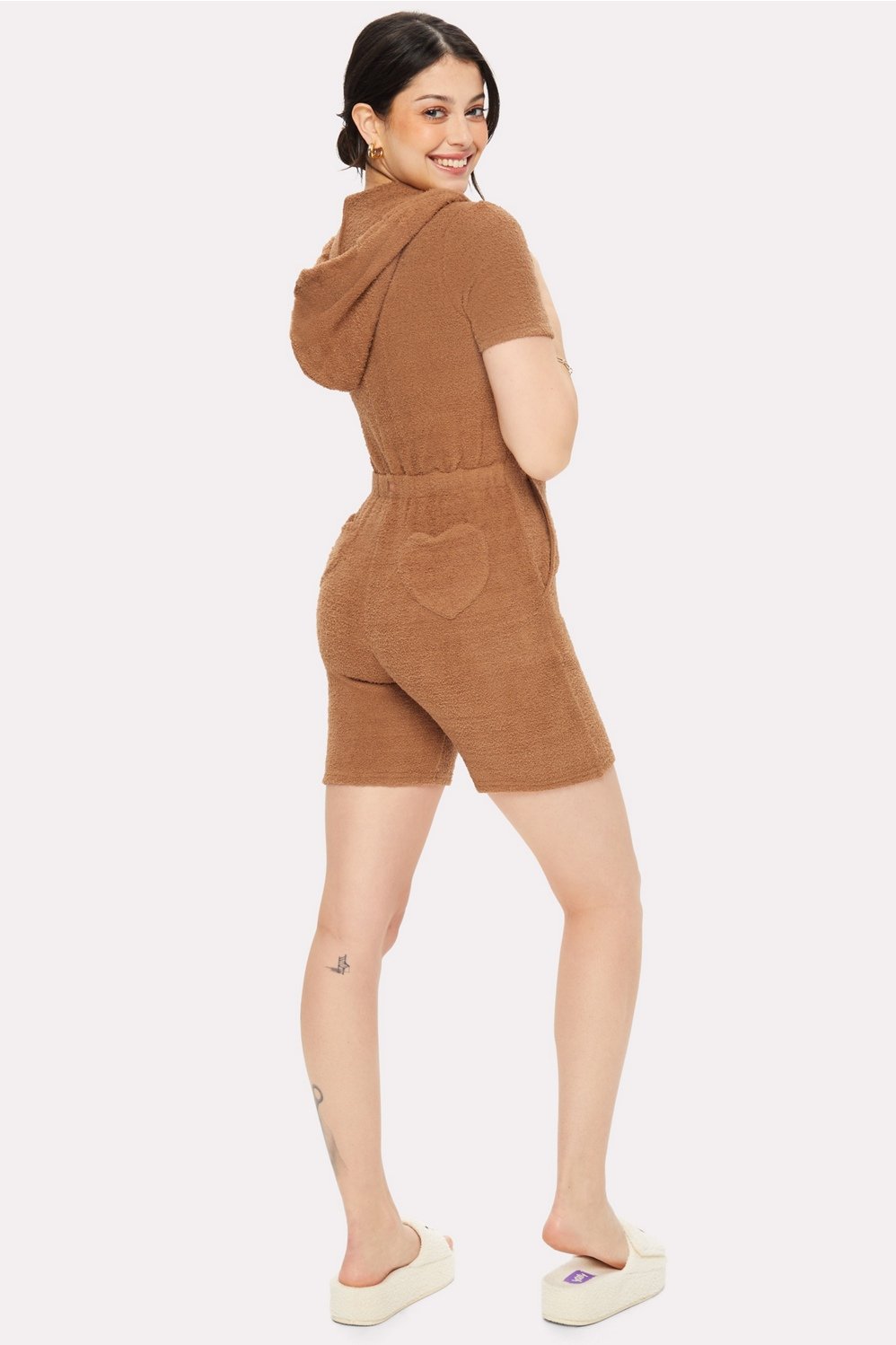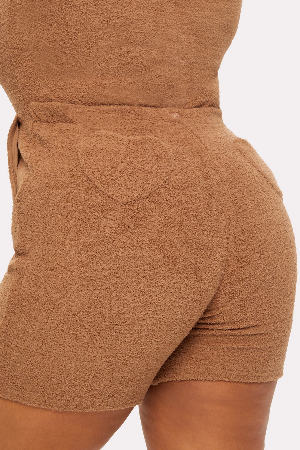Our famous Onesie, now in a sexy short version! Made from soft and cozy fabric, our Short Onesie features side pockets, elastic at the waist, a front zipper, comfy hoodie, and heart-shaped back pockets.