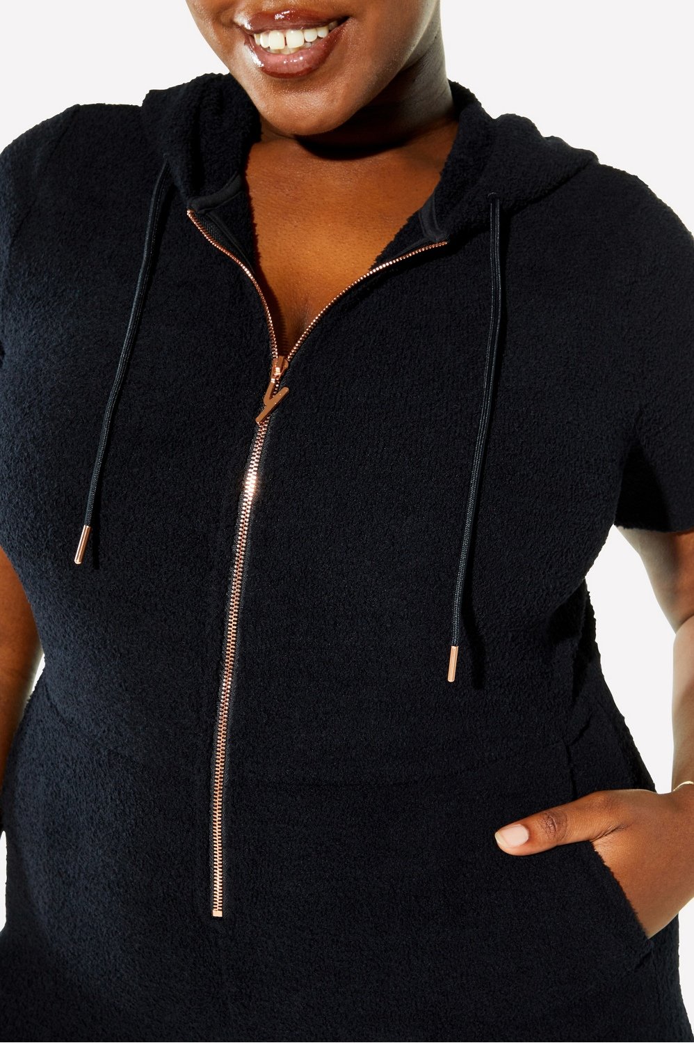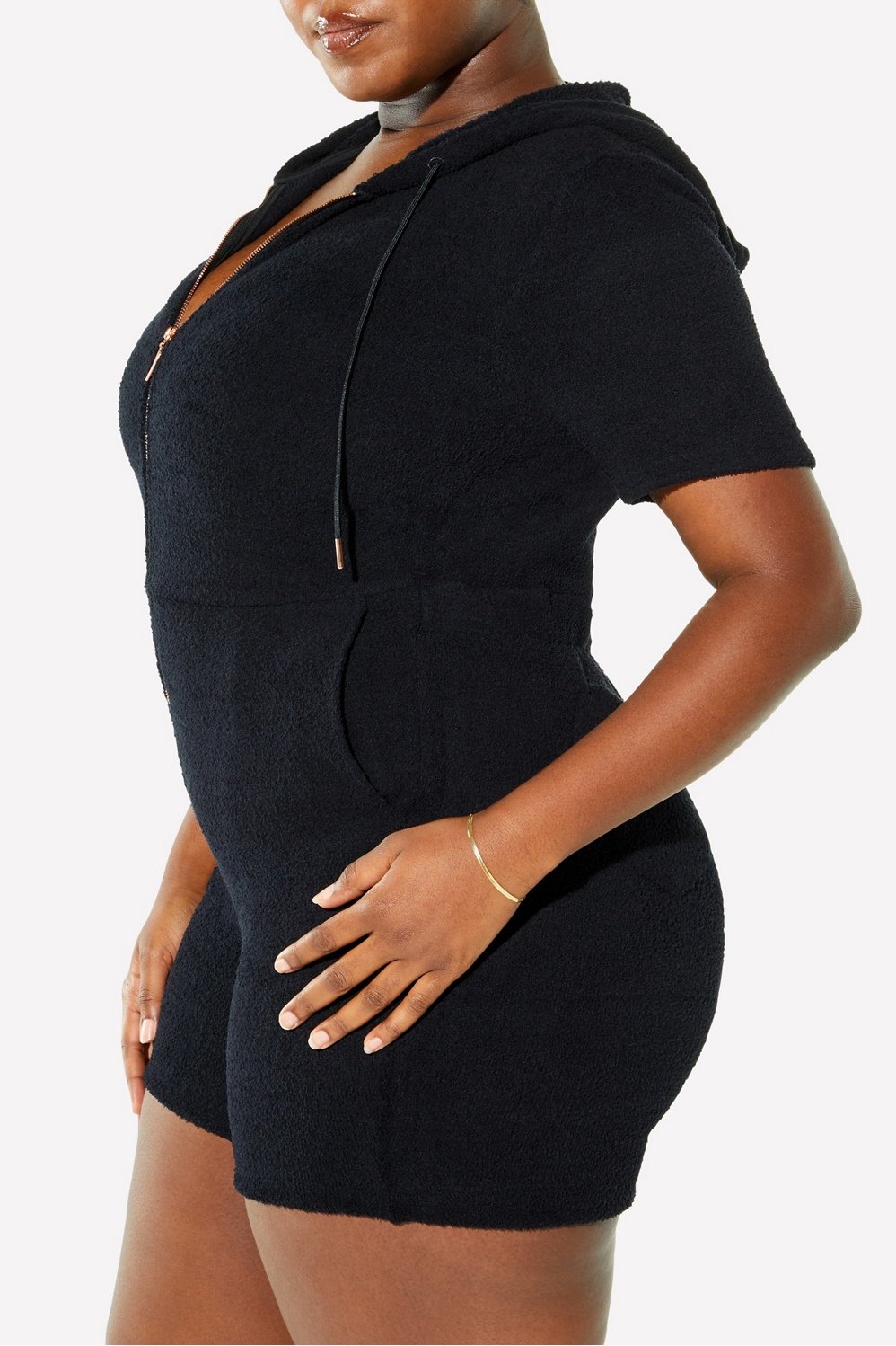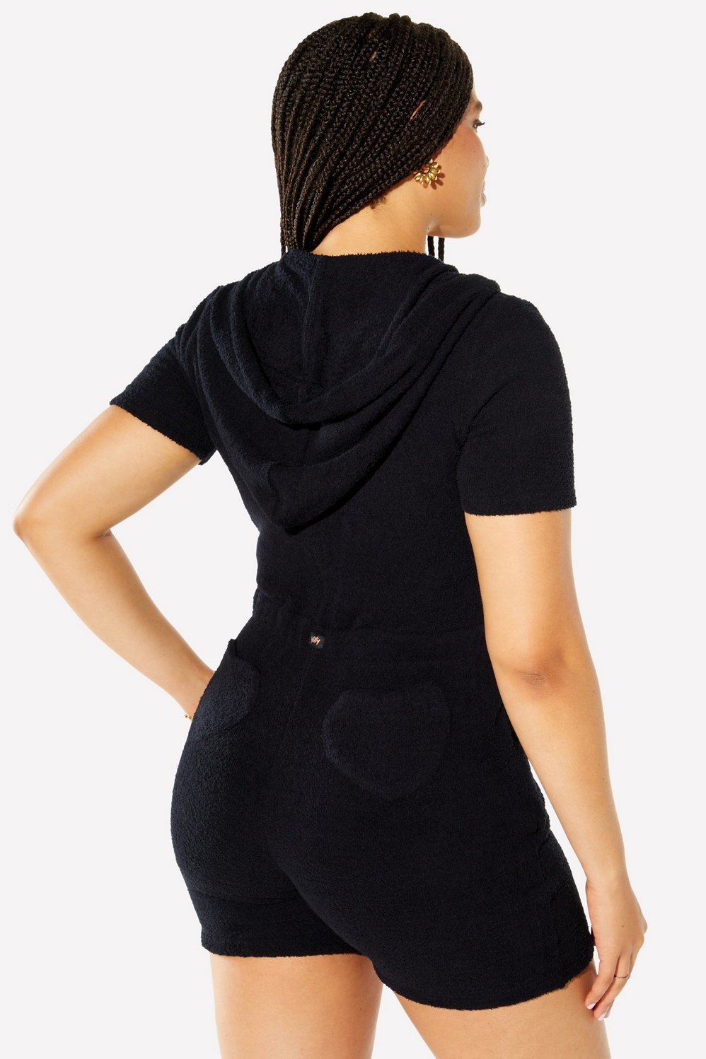 Our famous Onesie, now in a sexy short version! Made from soft and cozy fabric, our Short Onesie features side pockets, elastic at the waist, a front zipper, comfy hoodie, and heart-shaped back pockets.
