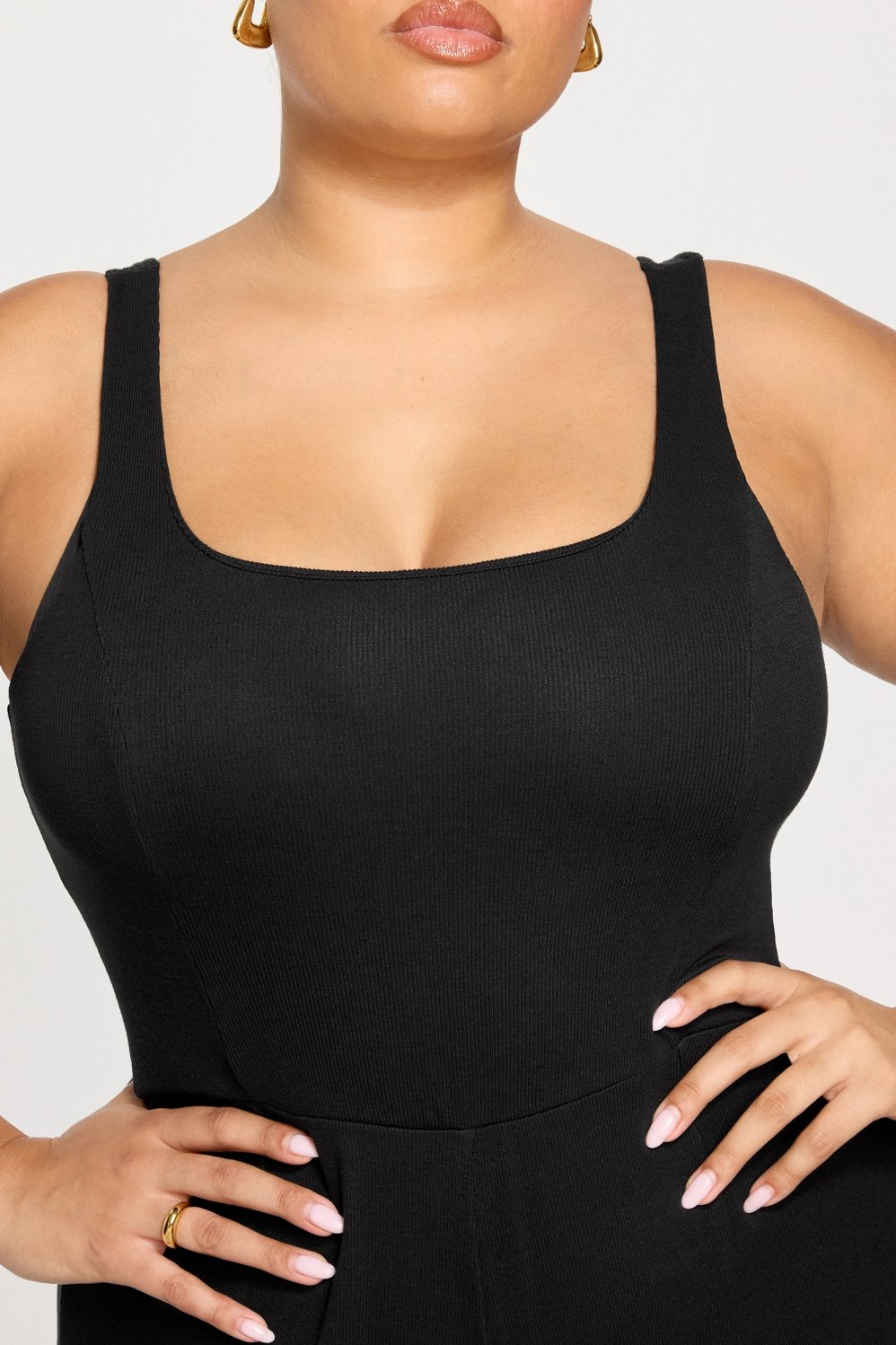 The definition of easy, one-and-done dressing. Designed with a flattering square neckline, a double-layered top for light support, and princess seams for a tailored look—this supremely soft ribbed modal jumpsuit makes looking polished effortless.